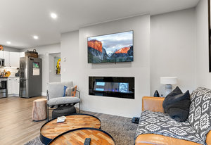 Welcome to this half duplex that feels like a single-family home and is priced like a condo! This beautifully remodeled unit feels brand new! The bright chef's kitchen has all stainless steel appliances, ceramic backsplash and quartz countertops. The living room has a freshly tiled fireplace, huge windows and plenty of space for friends and family to visit. The bedroom offers plenty of space for a king-sized bed and a generous closet. There is plenty of parking and a massive fenced yard with brand new pergola and fire pit area. The yard also offers a detached shop/storage area, a second storage unit, and a back deck perfect for BBQing. This home is a must-see, book your tour today!