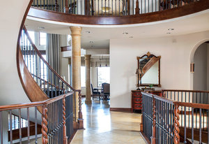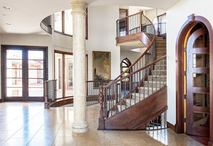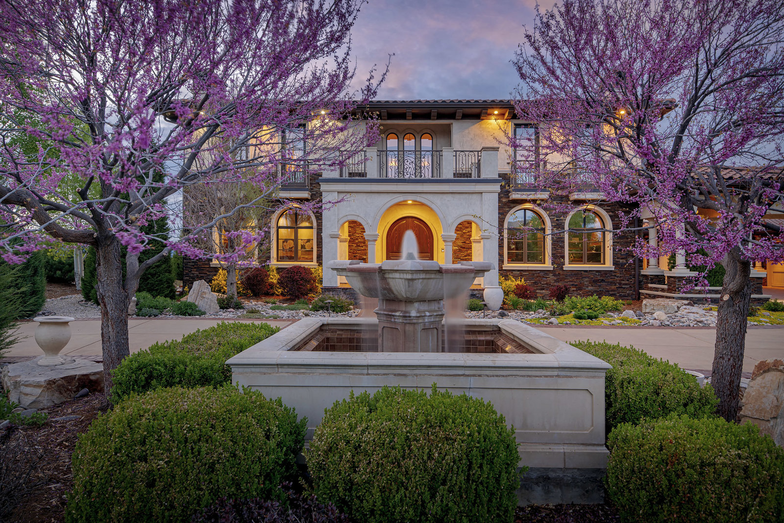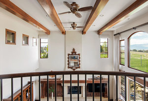 Experience the essence of Italian inspired architecture embodied in this stunning masterpiece, harmonizing a stone and stucco facade, barrel roof clay tiles, and graceful arched windows and doors, accentuated by wrought iron embellishments. Discover this custom-crafted five-bedroom home, radiating around a magnificent three-story curved staircase, an epitome of artistry and sophistication. Designed to embrace the breathtaking vistas of Long’s Peak and the back range mountains, the spacious rooms with 10 foot ceilings are precisely positioned to showcase the remarkable views. Every detail speaks of luxury, from the arched doorways, crown moldings, alder wood doors, and ceiling beams to the blend of premium finishes and sumptuous designer flourishes.