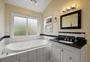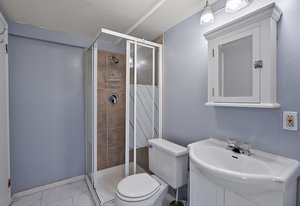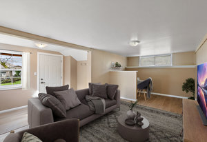 This versatile 2,576 square foot residence offers four bedrooms and three bathrooms, including a self-contained bachelor suite on the lower level with private entrance. The main floor presents two spacious bedrooms complemented by a well-appointed kitchen, formal living room, charming sunroom, and a contemporary family room addition enhanced with skylights and a wood-burning stove for ambiance and warmth.