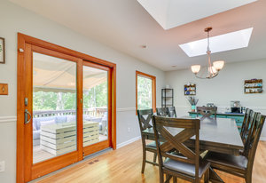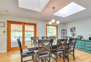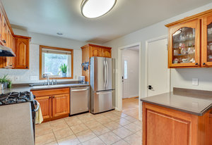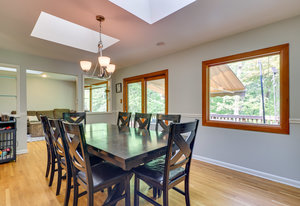 Welcome Home to Rolling Valley! Don't miss out on your chance for one-level living at its best. This home is situated on a large .23 acre lot, overlooking Pohick Stream Valley Park. Offering exceptional privacy and access to endless nature trails right from your doorstep. Inside, you'll find 5 bedrooms and 3 full baths, and neutral paint throughout. The kitchen features natural wood cabinetry, corian countertops, new honed marble backsplash, and all stainless steel appliances. The expanded dining room is perfect for hosting gatherings with ease. Natural lighting abounds with skylights located in the living room, dining room, and bathroom. Thoughtful design details include dual-sided glass shelving, ideal for displaying your favorite décor. Take in the wooded view from the living room or off the deck, comfortably equipped with a built-in awning to enjoy your morning coffee rain or shine! The primary suite overlooks the tranquil backyard and includes an ensuite bath, dual corian sinks, recessed shelves, natural wood cabinetry, and elegant tile flooring. The hallway bath features a deep soaking tub, niche shelving, all new vanity with quartz countertop and brushed nickel hardware. Hardwood floors run throughout the main level’s living areas and bedrooms, creating a warm and cohesive look. Downstairs, the finished basement offers an expansive recreation room — perfect for movie nights or curling up by the wood fireplace. Two large spacious bedrooms are perfect for overnight guests or a home office. The basement features a fully finished bathroom with corian sink & counters, modern lighting, upgraded mirror, new commode, and updated shower. Laundry day is a cinch with plenty of room to fold and sort clothing and a newer LG High-Efficiency Washer & Dryer set. The laundry room, combined with the utility room, is outfitted with new luxury vinyl tile. You’ll also find walk-out access to the beautifully terraced backyard, featuring two additional decks built into the hillside — ideal for entertaining. The one-car carport is perfect for shielding you from the elements whether you're transferring groceries (or small humans) from the car back home. Plentiful storage options available in the carport storage shed, basement storage room, attic with pull down ladder, and storage shed in the rear yard. Only steps from Rolling Valley Pool & Tennis Club and only 0.6 miles to Hunt Valley Elementary School. Pool Bond Membership is transferrable to the new owner (inquire for more details). Easily accessible to major roads: 395/95/495/644/286. Perfect for those commuting to the Pentagon, Fort Belvoir, Quantico, and DC. Multiple transportation options include: the metro, VRE, buses, shuttles, or slug lines. You can reach the Pentagon from Gambrill Road Park & Ride in under 30 minutes via the Fairfax Connector! Don't miss out on your chance to own a home in the highly sought after West Springfield High School Pyramid. VA Assumable Loan at 2.5%. Inquire for additional details!