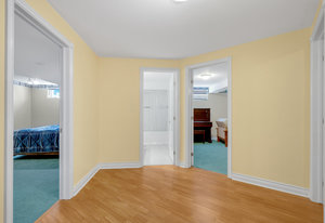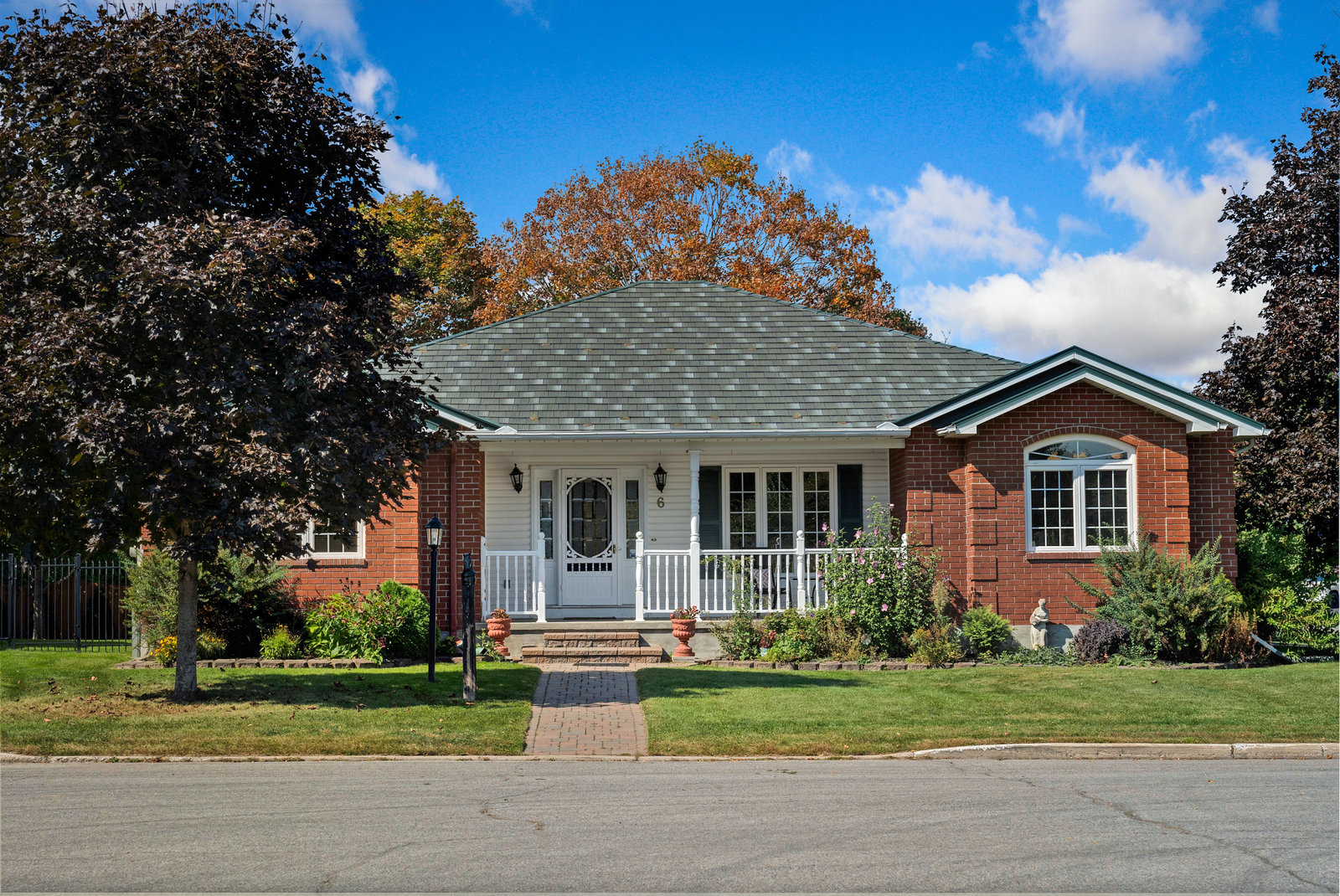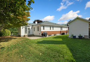 This custom built bungalow is situated on a large corner lot, has a double garage, and has been lovingly maintained through out its ownership. It features an updated and spacious kitchen with plenty of cupboard and counter space, a study desk, and banquet seating for casual family dining. The main level also has a separate living room with a cozy fireplace, a generous dining room, and a charming sunroom with access to the rear yard. The serene primary suite with ensuite and walk-in closet, two large secondary bedrooms, full bath, and convenient laundry complete the main floor. The fully finished lower level offers a versatile rec room, an additional bedroom, office/gym space, and a full bath, perfect for guests or an older child looking for their own space. The beautifully landscaped and fully fenced yard, complete with an irrigation system, provides a peaceful retreat on the patio. Steps away from schools, cafes and Trans Canada trail. The perfect place to call home in Stittsville.