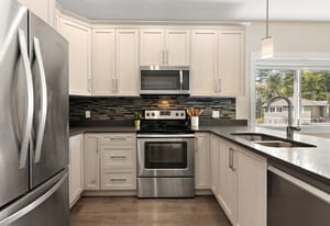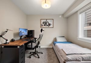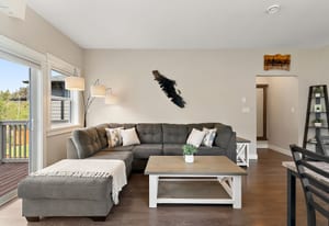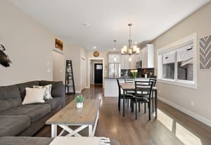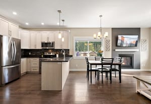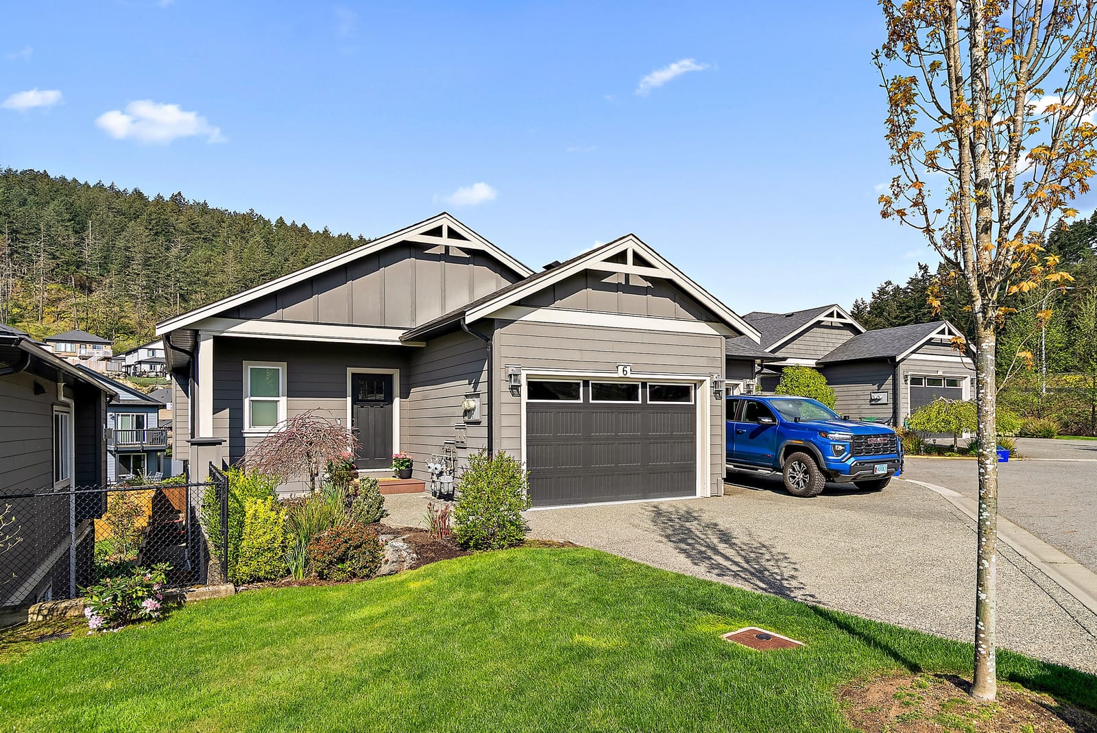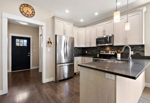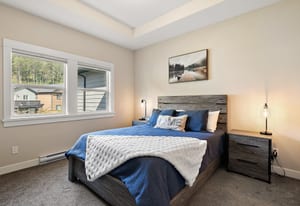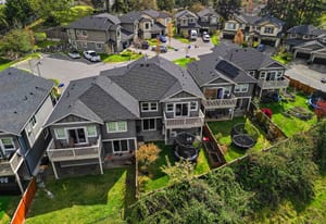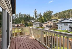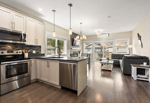 Tucked in a quiet cul-de-sac, this spacious 3 bed, 3 bath duplex-style townhome offers modern comfort and a small-community feel. Convenient main level living here! Kitchen, dining and living room flows to a large deck overlooking a fully fenced large yard with a peaceful greenbelt behind — perfect for privacy! Grow your garden, enjoy space for your dog and kids to run around and relax and entertain! The kitchen features SS appliances, a garburator, quartz countertops and a pantry. A gas fireplace and heat pump keep you comfortable year-round. The main floor primary includes a walk-through closet and ensuite for easy, accessible living. Downstairs: two more bedrooms, ...