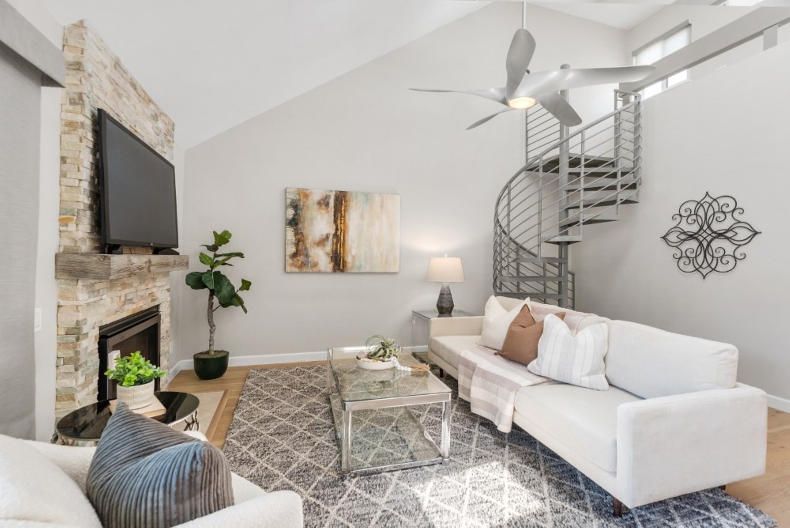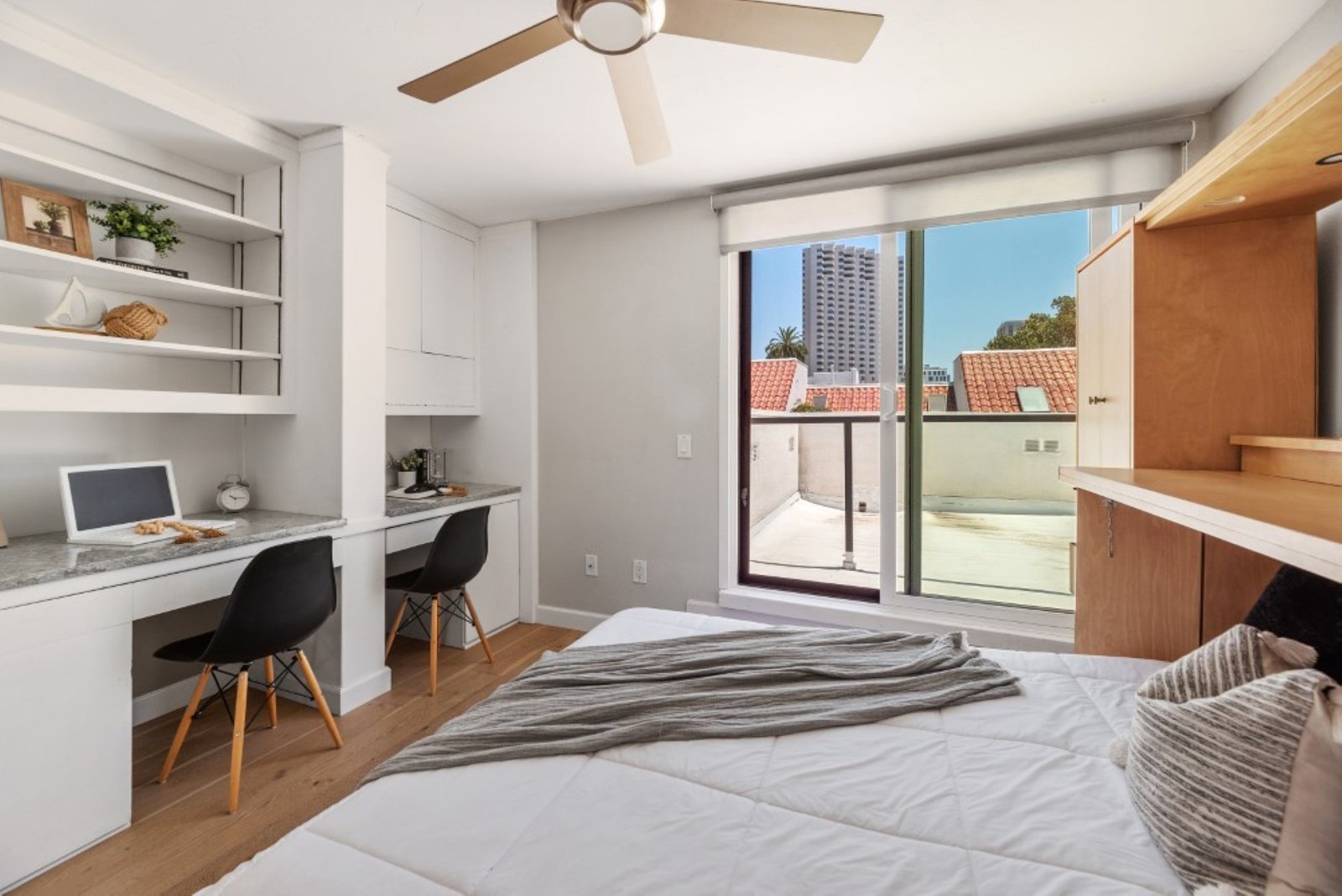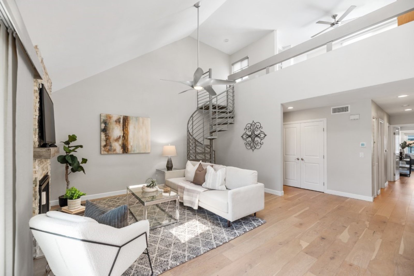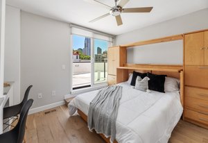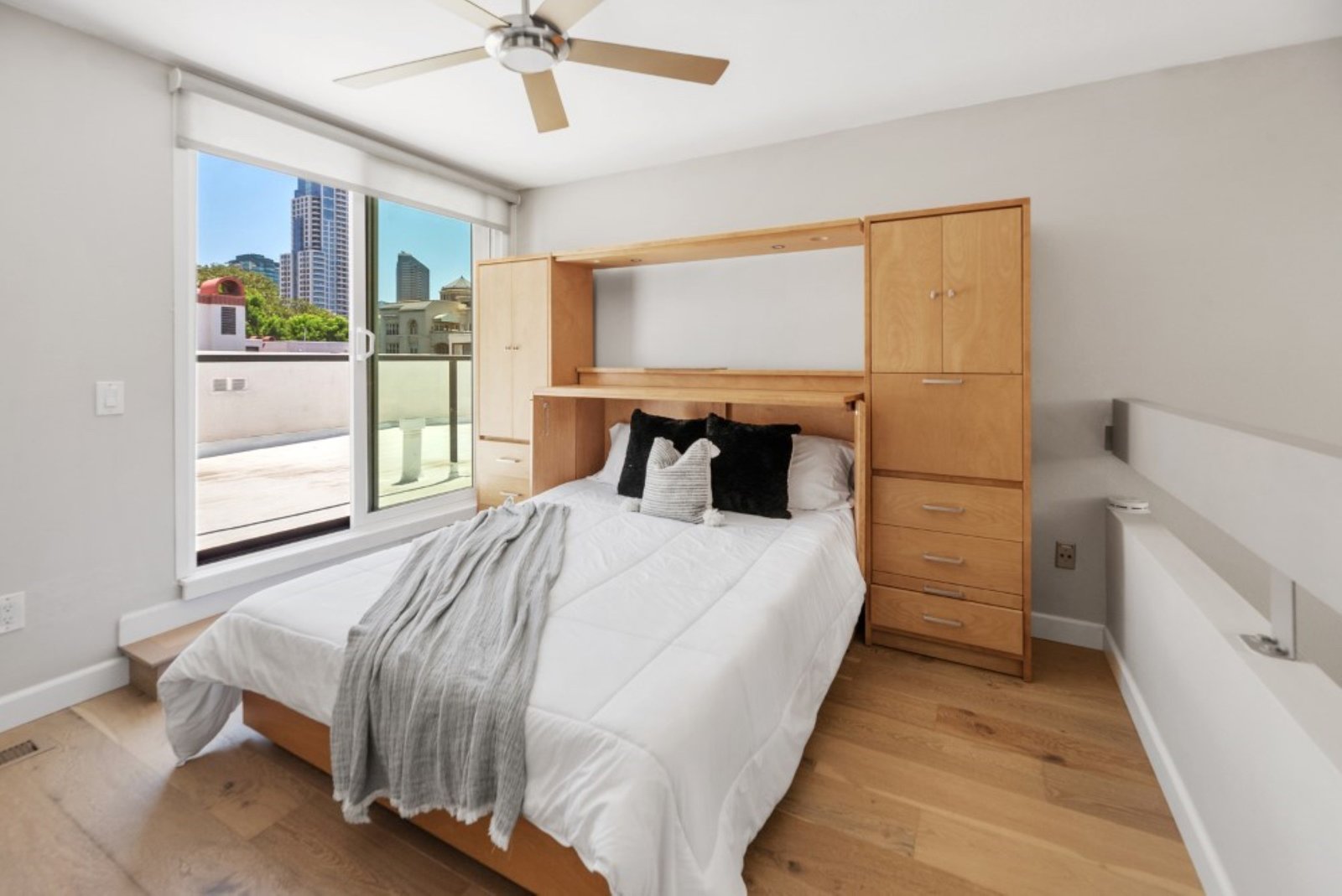 Come live the good life in America's Finest City in the desirable Marina District downtown. This turnkey, remodeled Park Row property is dialed in. 2 sizeable bedrooms, plus optional 3rd up (currently has a Murphy Bed and 2 built in desks). Hardwood flooring, beautiful Quartz Cambria countertops, stainless steel appliances, 4" baseboards, vaulted ceiling in the family room with gorgeous fireplace and spiral staircase, designer light fixtures, custom closets in each bedroom and ample storage in the bathrooms, plus a balcony.