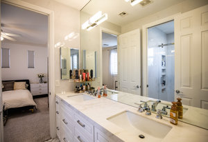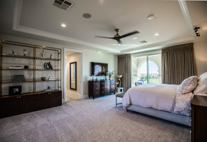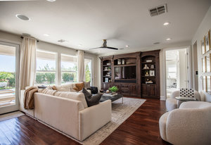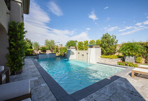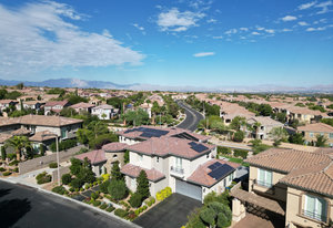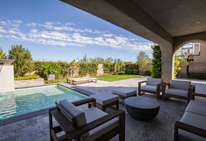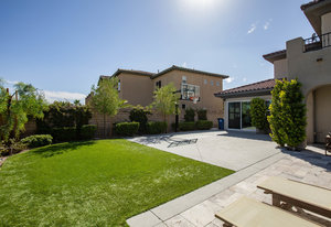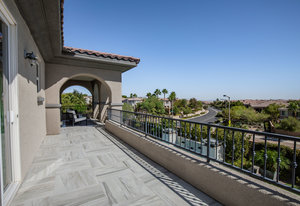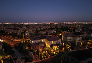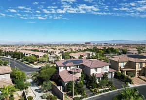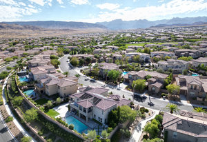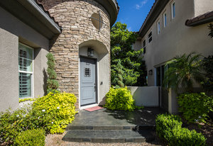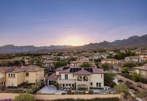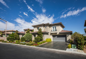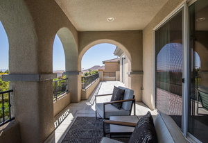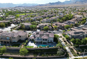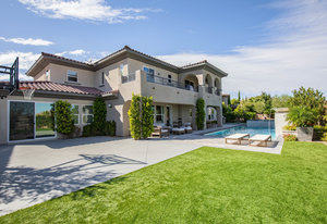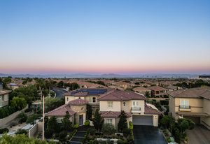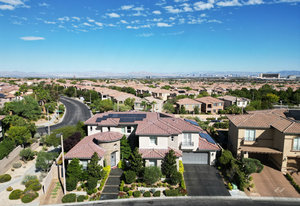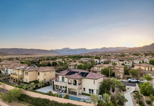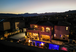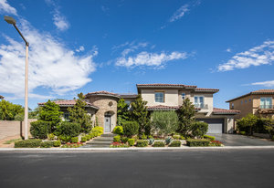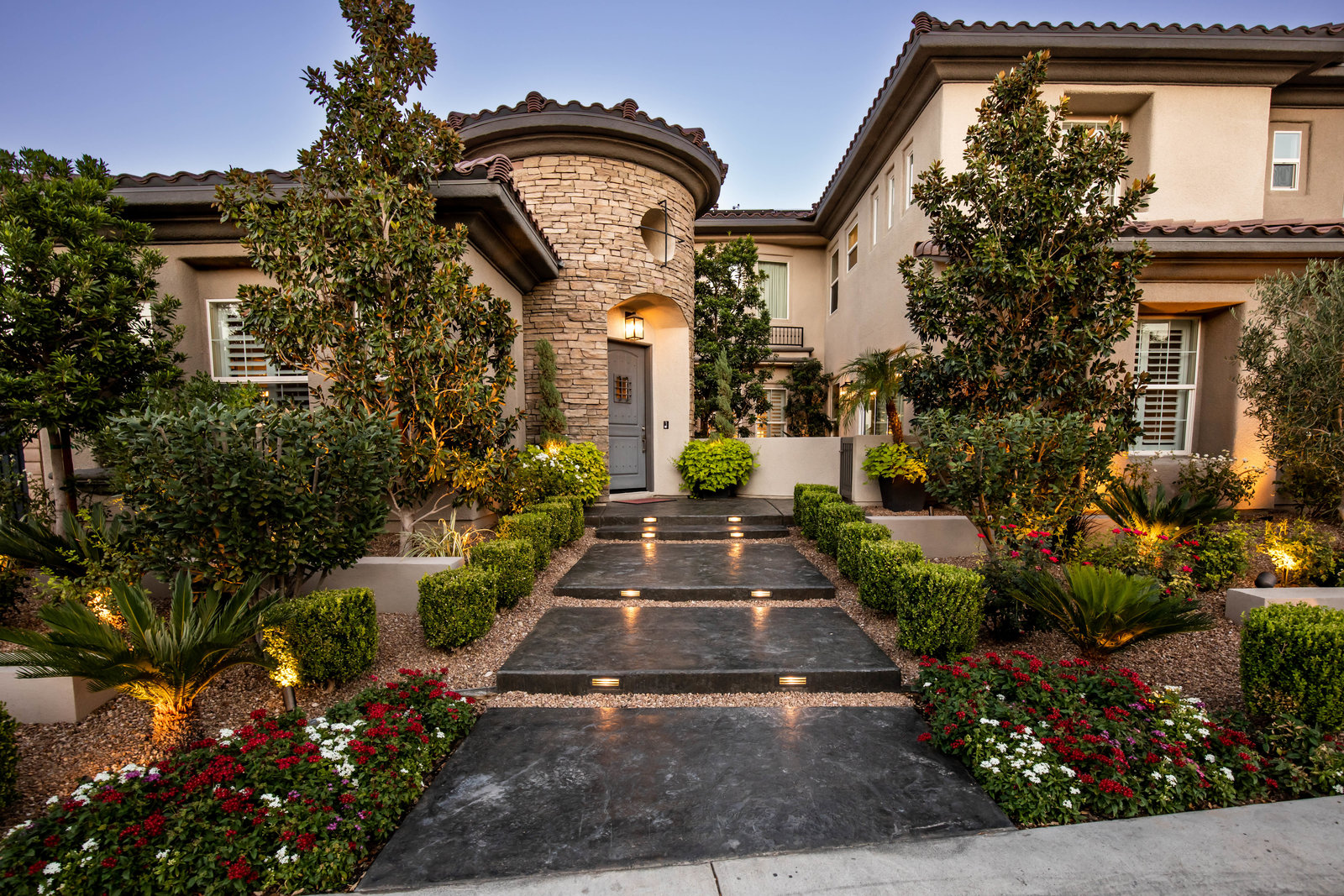 Indulge in luxury living at Serrano, an exclusive gated enclave in the Paseos of Summerlin just minutes from Downtown Summerlin and the Red Rock Mountains. This impressive 4790 sq ft residence boasts one of the community's largest floor-plans, offering 5 bedrooms and 4.5 baths, which include the large downstairs guest suite or teen hangout. Professionally designed and appointed finishes throughout this highly upgraded home. The home offers formal living and dining rooms, gourmet kitchen, breakfast nook, large family room and separate offices. The home is located on an elevated lot and offers strip views from the private, primary suite balcony. You will not want to leave the breathtaking primary suite and primary spa-like bathroom with his and hers private commodes. This property exudes curb appeal with lush, impeccably maintained landscaping. Step into the expansive backyard oasis featuring a sparkling pool and spa with water and fire features. Truly an entertainer’s dream home!