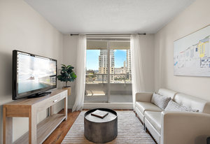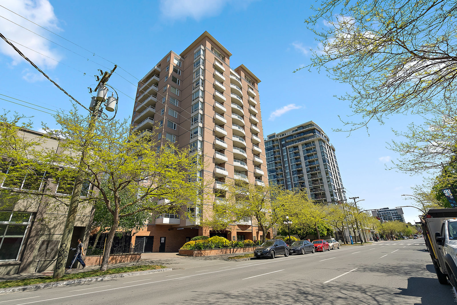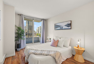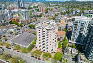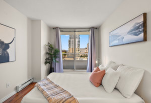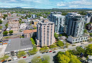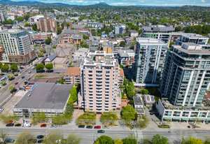 Bright, southwest-facing suite at The Manhattan! Perfectly situated in the heart of vibrant Downtown Victoria, this steel & concrete high-rise was built by BOSA. Well maintained and updated, this stylish yet cozy 1-bedroom condo offers 7th-floor city views stretching toward the Sooke Hills. The open-concept layout features large picture windows that flood the space with natural light, plus the convenience of in-suite laundry. Soak in long summer evenings and stunning sunsets from your oversized balcony.