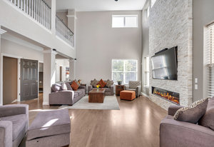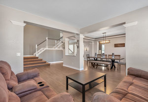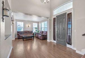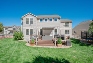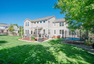Welcome to Winterberry in Castle Pines — one of Metro Denver’s most sought-after communities! This stunning home is sure to impress from the moment you arrive. Step inside to discover a bright, open floor plan featuring rich wood floors, soaring ceilings, and an abundance of natural light throughout the main level. The expansive kitchen with granite countertops is perfect for entertaining yet comfortable enough for relaxed family nights. A striking two-story custom stone fireplace anchors the family room, creating a space that feels both grand and inviting. The main floor also offers a versatile bedroom (non-conforming-no closet) with an attached full bath, ideal for guests or a private home office. Upstairs, retreat to your spacious primary suite, complete with room for a cozy sitting area, double-sided fireplace, luxurious five-piece bath, and his/hers closet space. Three additional bedrooms and two full bathrooms provide plenty of room for everyone. Downstairs, the finished basement is designed for entertaining, featuring a custom wet bar with a dishwasher, bar fridges, and built-in shelving. You’ll also find a large bedroom and a beautifully finished ¾ bath perfect for guests or extended stays. Step outside to the large back deck, ideal for grilling or relaxing in your private backyard oasis. The hot tub is included, offering the perfect spot to unwind. The three-car garage features a durable floor coating and ample storage space. Castle Pines North is a vibrant community offering a clubhouse, pool, yearround neighborhood events, and so much more. With convenient access to I-25, you’re just minutes from premier dining and shopping in Lone Tree and Castle Rock.