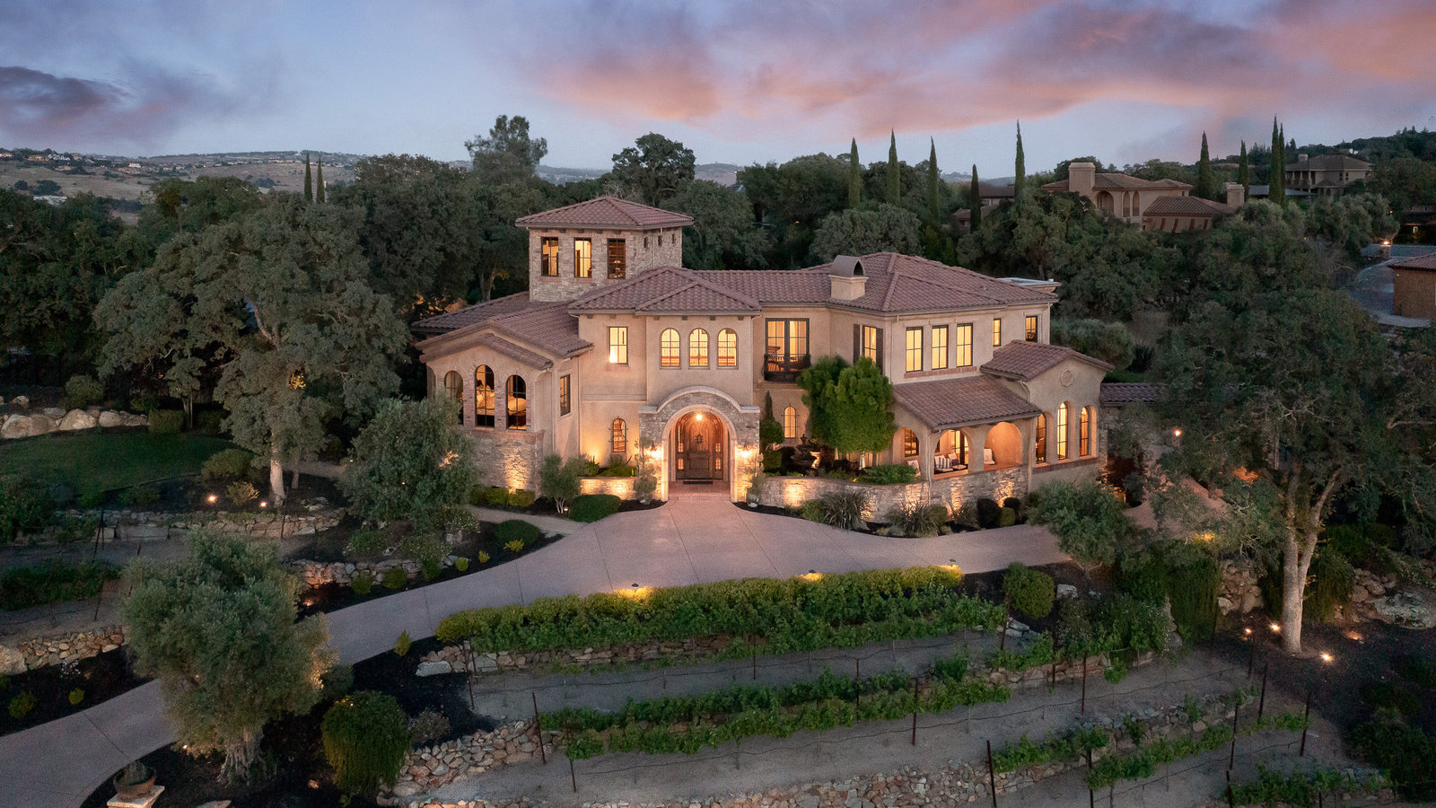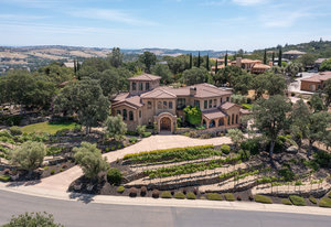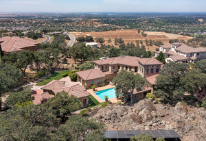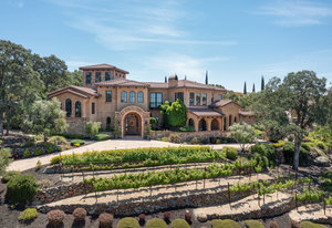 Nestled atop the golden hills of Kalithea (beautiful view), anchored by stately rock outcroppings and soil rich vines; above the deep blue vista of Folsom Lake and beneath painted sky sunsets, dwells this Classic California Spanish Style Home of which dreams are made. This entertainer’s oasis captivates upon arrival: 5,029 sq ft Main House, 450 sq ft pool house, and 300 sq ft wine cottage masterfully blends into the landscape with an artist’s eye and vintner’s passion. Old growth olive trees, secret garden with raised beds, manicured lawns, and three grape varietals expertly chosen by Nova Vines of Santa Rosa sit in splendor.