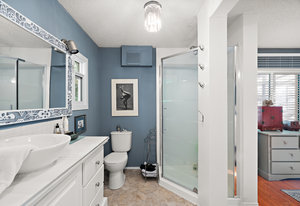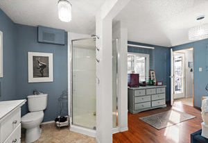 Inside, discover new windows, a new heat pump, fresh paint, updated lighting, and thoughtful designer like touches throughout. The spacious living area connects to a well-designed kitchen with ample cupboards, while the primary bedroom features a walk-in closet and ensuite shower. Easy-care vinyl and laminate flooring make maintenance simple.