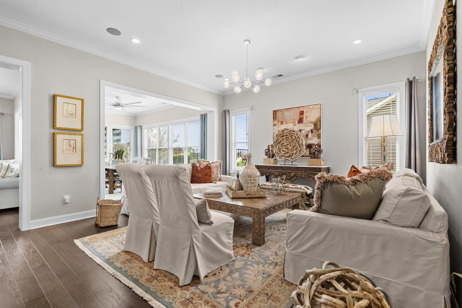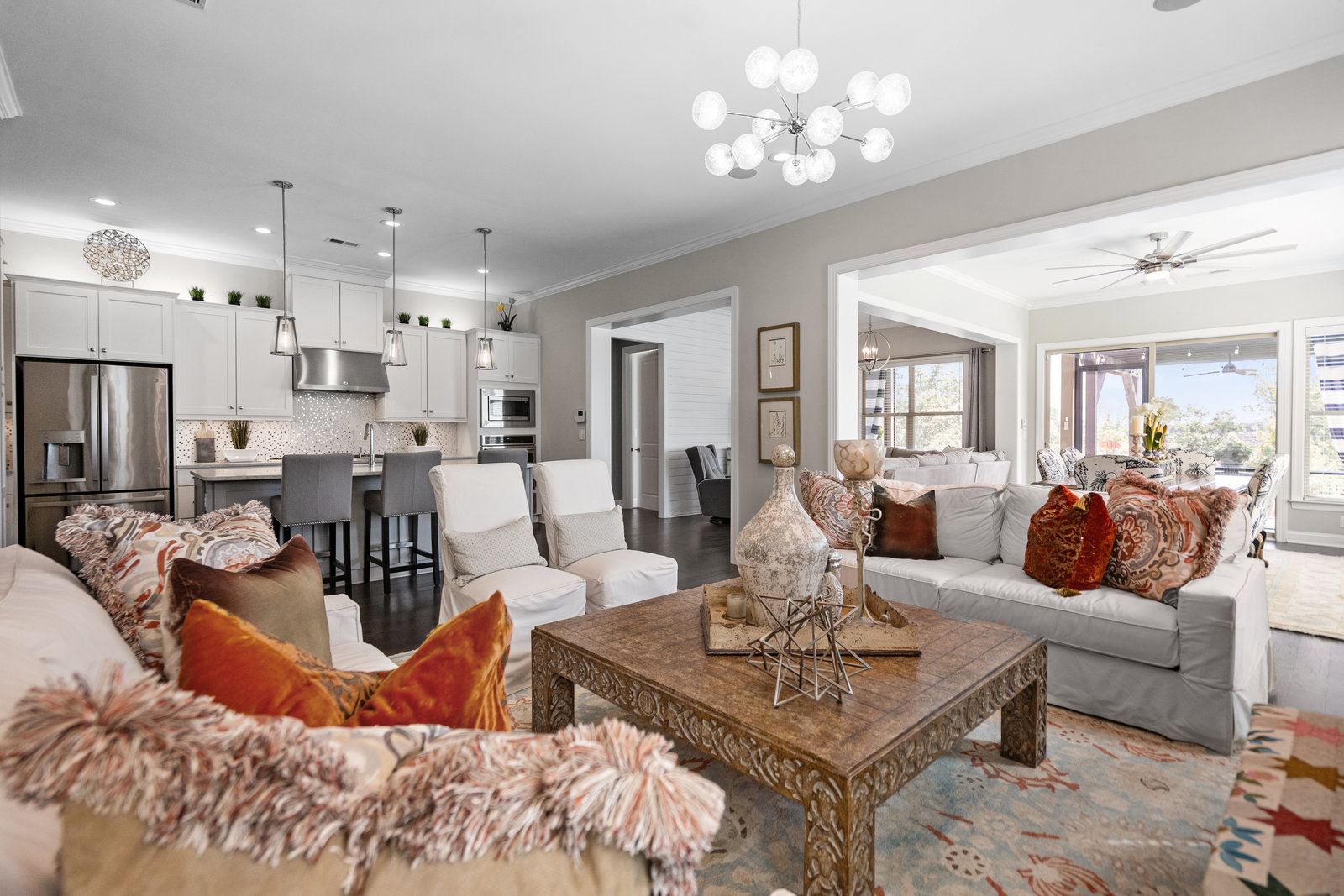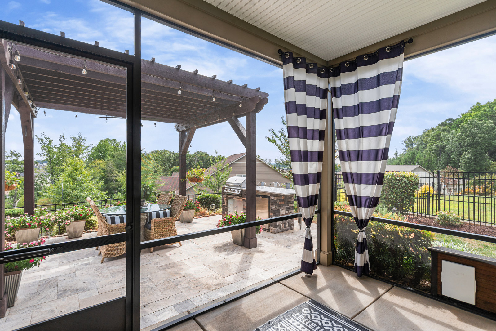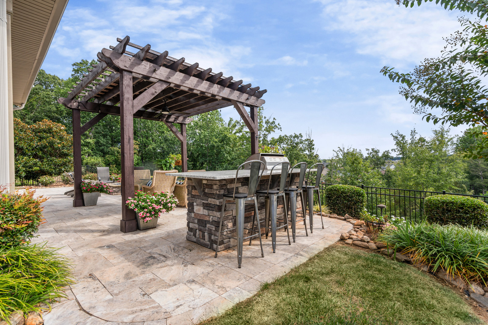 Gorgeous unobstructed sunrise & sunset views from the south facing cul de sac, premium private view on fenced in lot. One of a kind 4 Bedroom, 4 Bath, Office, Sunroom, Loft & Flex Space. An Entertainers Paradise featuring a screened Porch, Travertine patio with fire pit, pergola and outdoor serving area with a built-in grill & refrigerator all highlighted by lush year-round landscaping. Flexible floor plan features open concept living and a Chef's kitchen w/6 burner gas cooktop, built-in oven and warming drawer. Wide plank wood floors, custom carpeting and blinds, recessed lighting as well as unique lighting fixtures and crown molding throughout. Gracious master bedroom & en-suite bath features dual vanities and make up area along with tiled walk-in shower and closet. Walk-in attic storage for all of those items you just can't part with. 4' extended epoxy floored garage. Trilogy is a 5-Star Active Resort Community: Club House/Swimming Pools/Tennis/Pickle Ball/Restaurant & Bar/Freedom Boat Club/Nature Trails/Fitness Center/Art Studio/Front & Side Yard Maintenance. Your resort style dream home is waiting for you today!!!