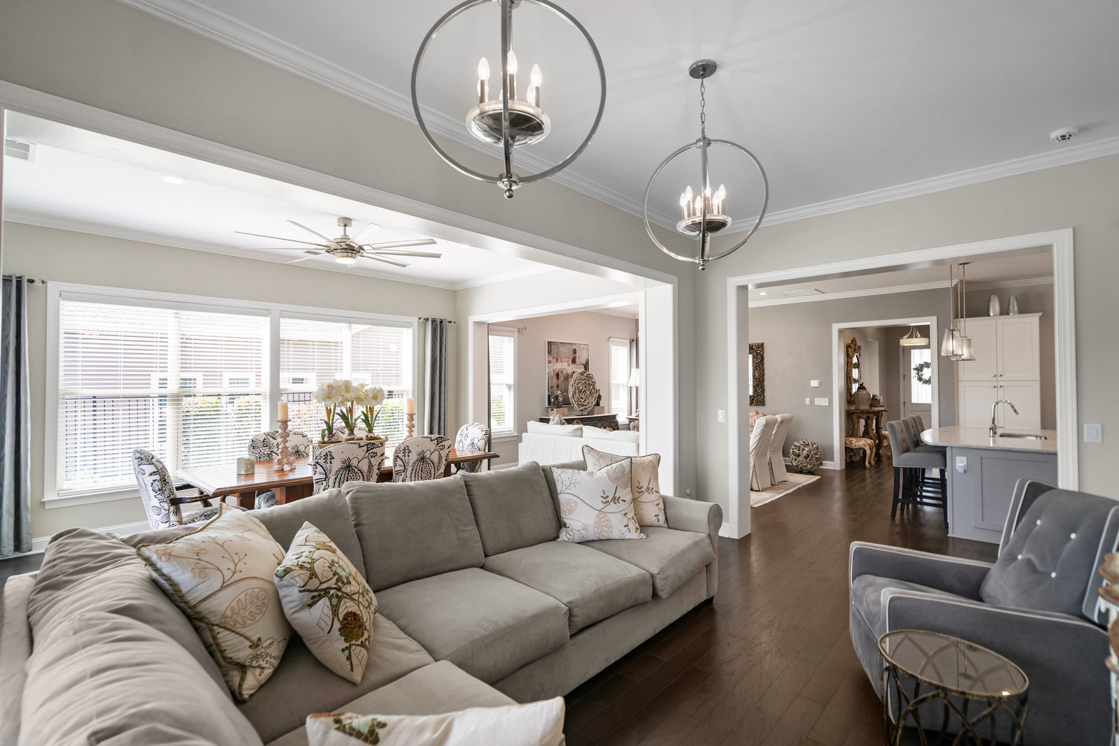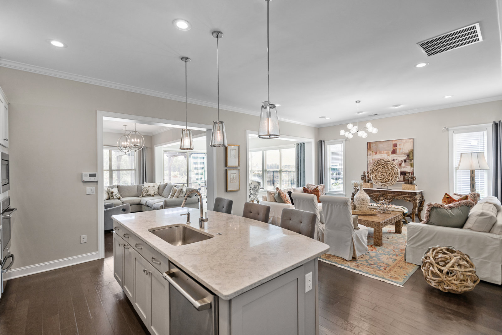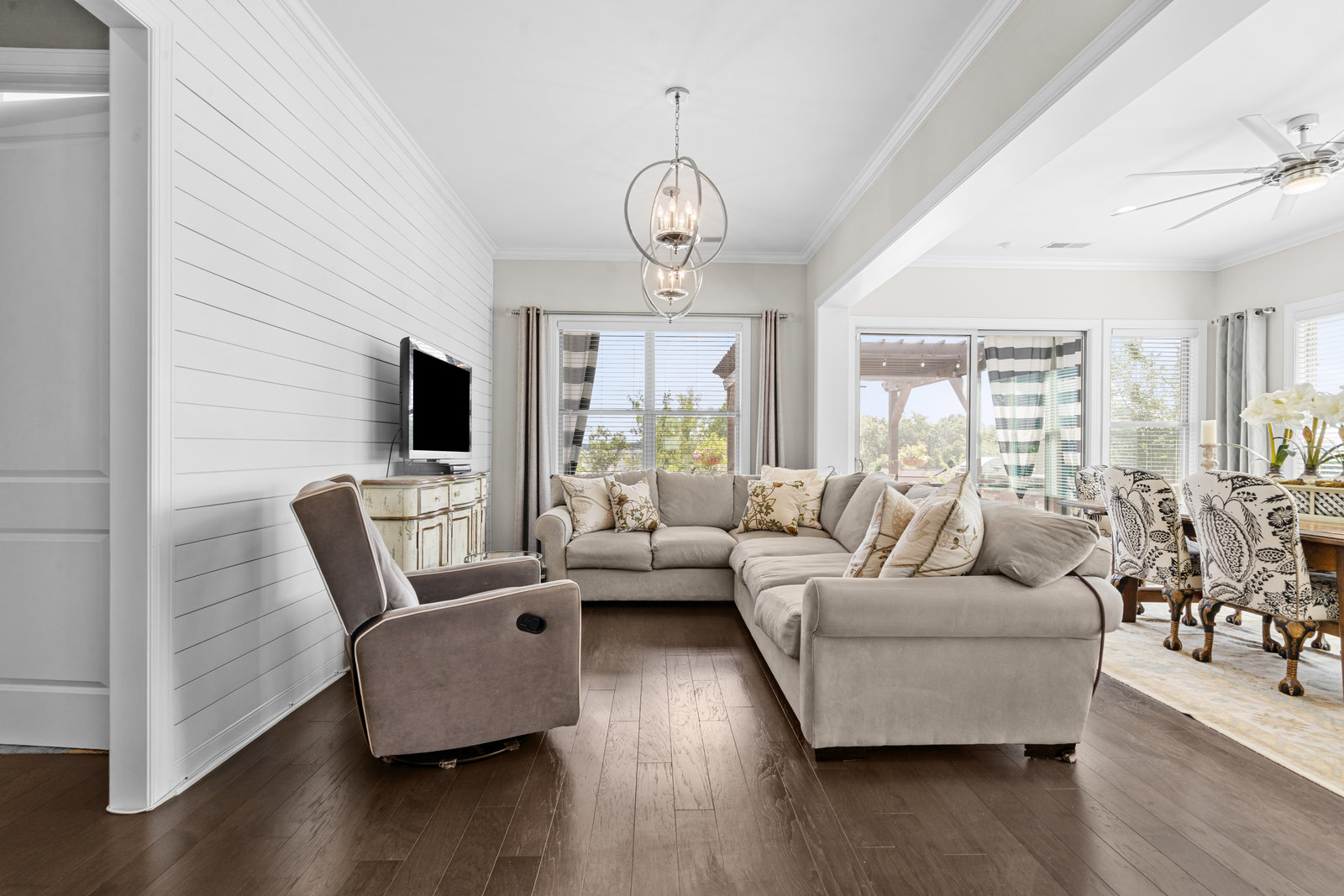 Gorgeous unobstructed sunrise & sunset views from the south facing cul de sac, premium private view on fenced in lot. One of a kind 4 Bedroom, 4 Bath, Office, Sunroom, Loft & Flex Space. An Entertainers Paradise featuring a screened Porch, Travertine patio with fire pit, pergola and outdoor serving area with a built-in grill & refrigerator all highlighted by lush year-round landscaping. Flexible floor plan features open concept living and a Chef's kitchen w/6 burner gas cooktop, built-in oven and warming drawer. Wide plank wood floors, custom carpeting and blinds, recessed lighting as well as unique lighting fixtures and crown molding throughout. Gracious master bedroom & en-suite bath features dual vanities and make up area along with tiled walk-in shower and closet. Walk-in attic storage for all of those items you just can't part with. 4' extended epoxy floored garage. Trilogy is a 5-Star Active Resort Community: Club House/Swimming Pools/Tennis/Pickle Ball/Restaurant & Bar/Freedom Boat Club/Nature Trails/Fitness Center/Art Studio/Front & Side Yard Maintenance. Your resort style dream home is waiting for you today!!!