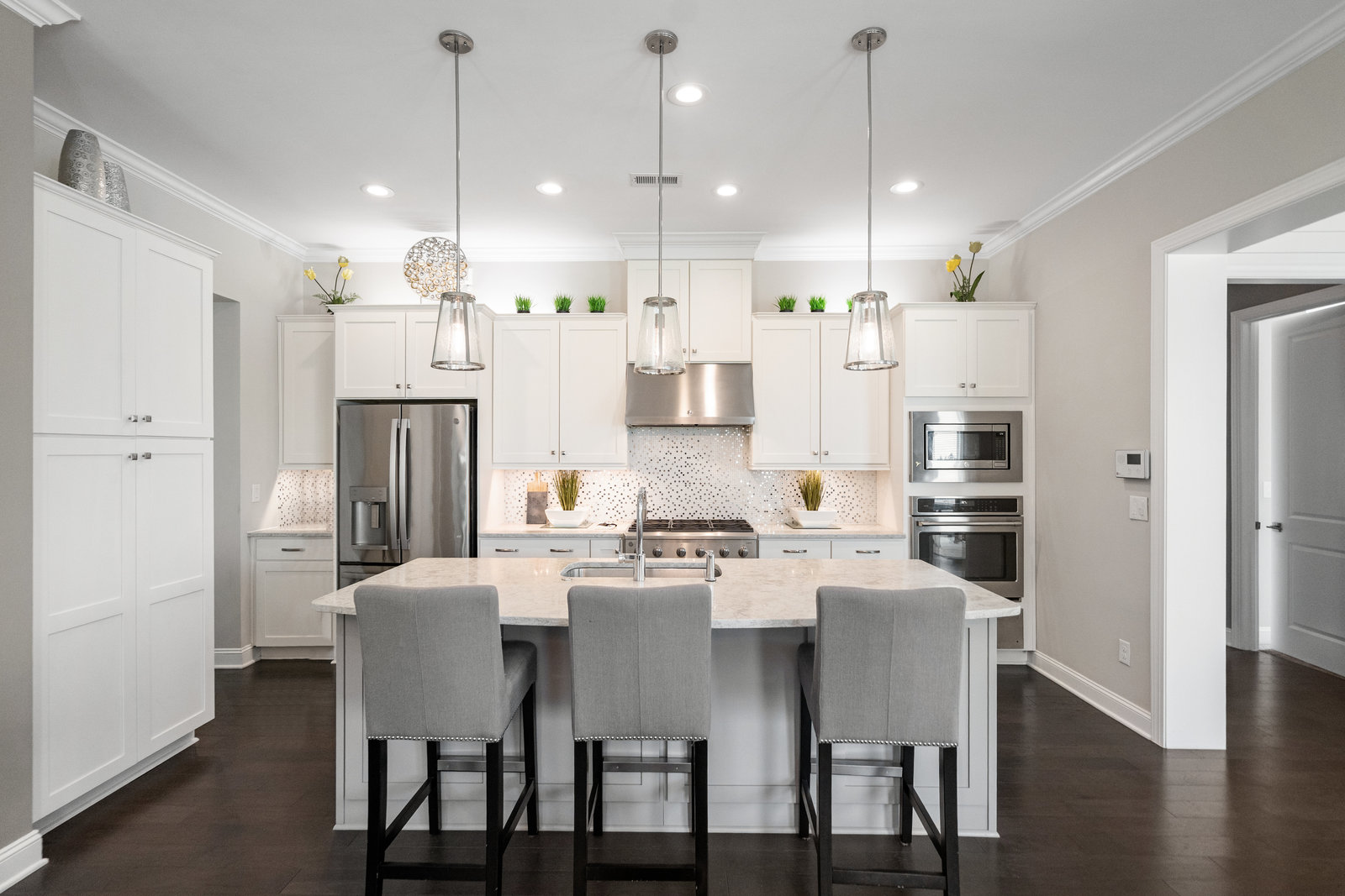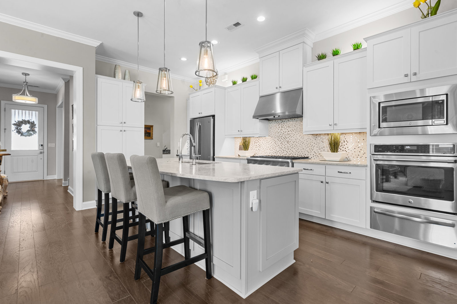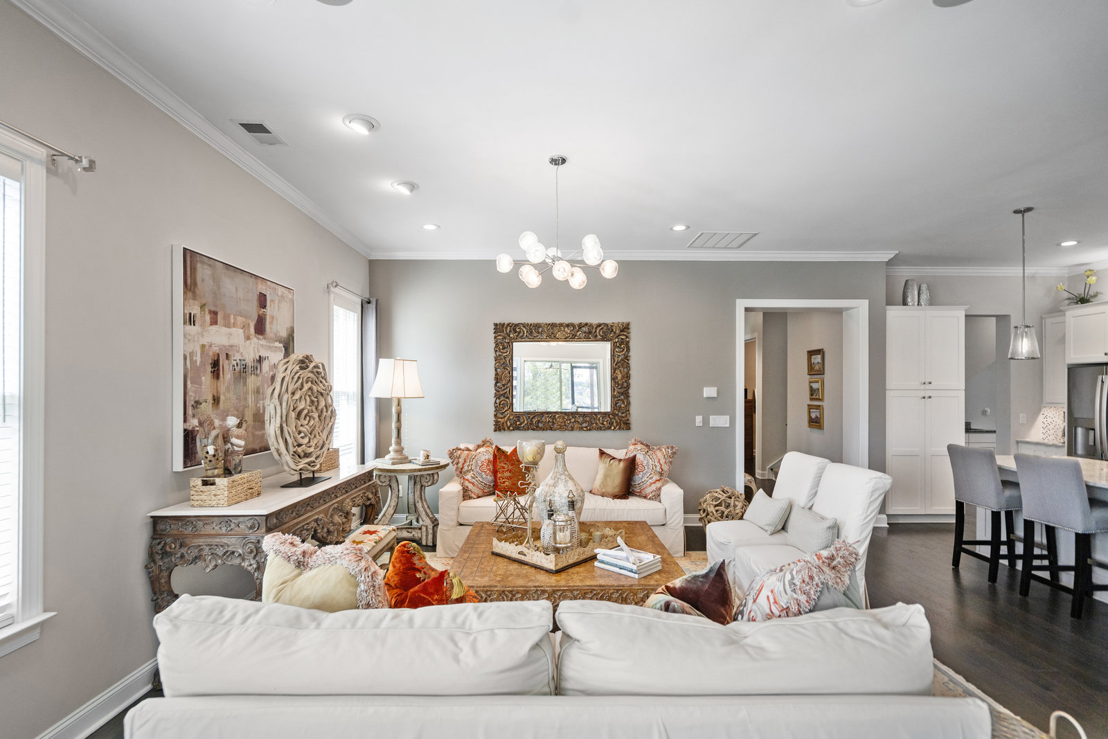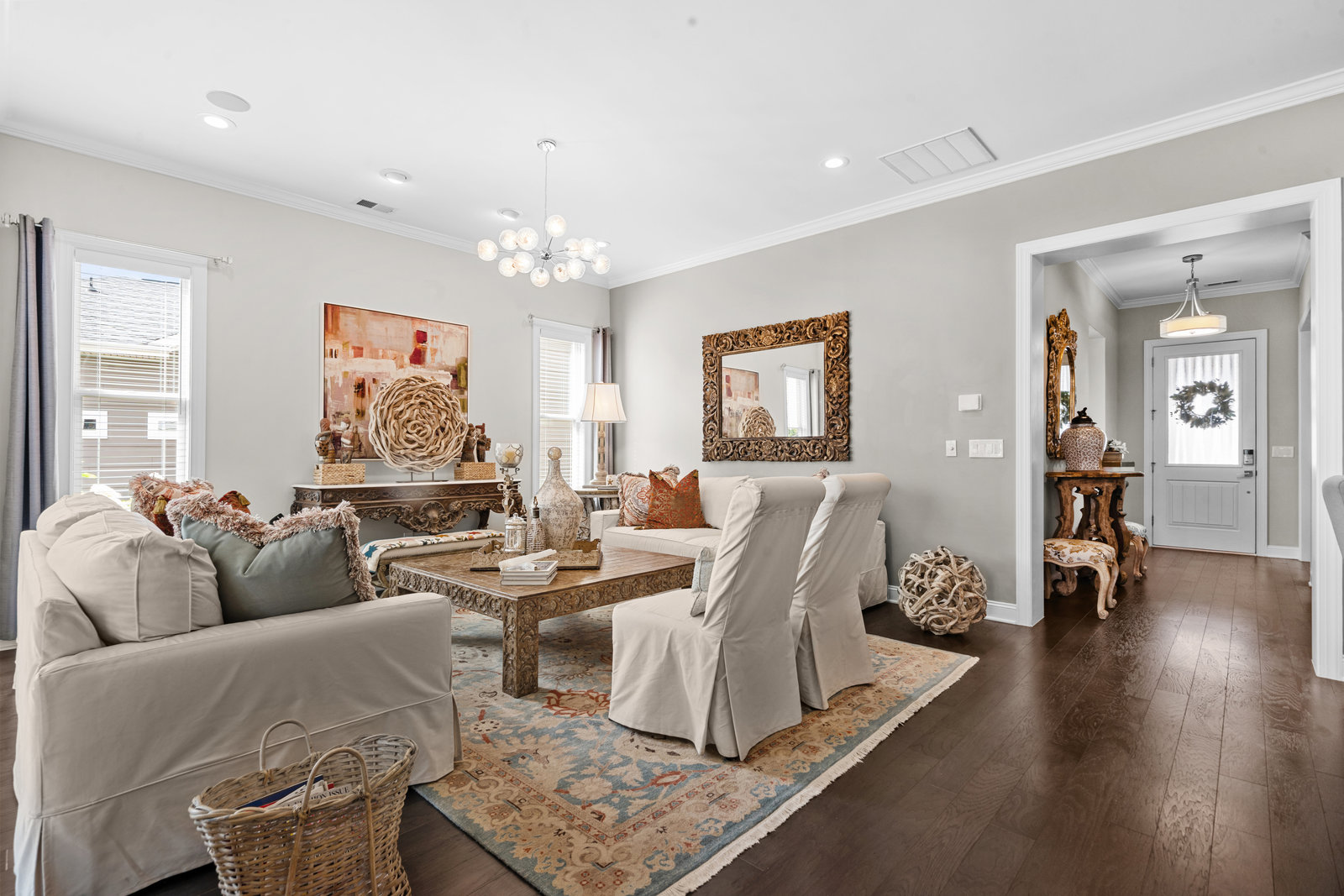 Gorgeous unobstructed sunrise & sunset views from the south facing cul de sac, premium private view on fenced in lot. One of a kind 4 Bedroom, 4 Bath, Office, Sunroom, Loft & Flex Space. An Entertainers Paradise featuring a screened Porch, Travertine patio with fire pit, pergola and outdoor serving area with a built-in grill & refrigerator all highlighted by lush year-round landscaping. Flexible floor plan features open concept living and a Chef's kitchen w/6 burner gas cooktop, built-in oven and warming drawer. Wide plank wood floors, custom carpeting and blinds, recessed lighting as well as unique lighting fixtures and crown molding throughout. Gracious master bedroom & en-suite bath features dual vanities and make up area along with tiled walk-in shower and closet. Walk-in attic storage for all of those items you just can't part with. 4' extended epoxy floored garage. Trilogy is a 5-Star Active Resort Community: Club House/Swimming Pools/Tennis/Pickle Ball/Restaurant & Bar/Freedom Boat Club/Nature Trails/Fitness Center/Art Studio/Front & Side Yard Maintenance. Your resort style dream home is waiting for you today!!!