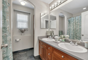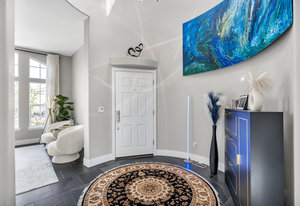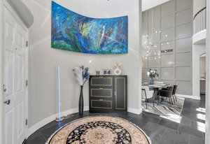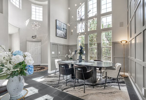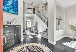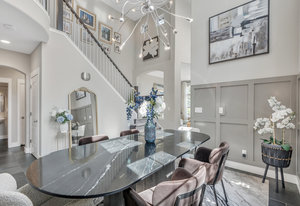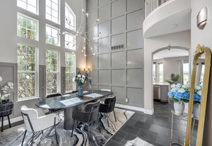 Welcome home to this beautiful move-in ready home backing to dedicated open space! Upon driving up, the curb appeal and updates will beckon you to go inside. Entering into this foyer, you'll immediately notice the abundance of natural light and the slate floors throughout with the dramatic rotunda. The living room to your right looks out to the front yard and is a versatile space that could be used as an office. Continuing in, the dining room with the soaring 2 story ceilings, custom wall treatment & one of a kind chandelier along with a wall of windows is a wonderful space for year-round gatherings. Entering into the heart of the home, you'll be greeted by the adjoining refreshed kitchen and family room. The large center island w/quartz counter is perfect to hang out plus you can wash dishes with a view to the open space! The kitchen nook is ideal for informal dining and gathering. You will love the oversized family room is large enough to accommodate the family while you enjoy the marble tile surround fireplace. Upstairs, walking through the double door entry into the primary suite, the vaulted ceilings, views to the open space and adjoining five-piece bathroom are paired w/engineered hardwood floors and tile in the bath. Primary bath is complete with dual vanities, large soaking tub, sep. shower and a custom walk-in closet. There are 3 additional bedrooms upstairs along with another full bath. The 2nd floor laundry room is complete w/cabinets & utility sink. In ...
