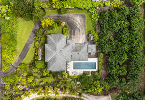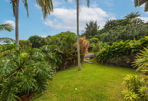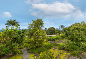 Mature plantings include palm trees, ornamentals and a cornucopia of tropical fruits.