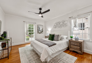 Run to this beautiful Morningside charmer overlooking tranquil green space with a detached two-car garage! This light-filled home is larger than appears with hardwoods throughout, original archways, and an owner's suite and guest bedroom on the main level. The large family room has a gas fireplace, a bay window overlooking the front yard, and an enclosed porch/sunroom w/original cracked tile floor perfect for an office/bonus room. The gorgeous kitchen has a Dacor stainless steel commercial range, quartz countertops, and is open to the dining room, which has a wall of French doors/windows across the back overlooking the huge entertaining deck & level backyard. The owner's suite also has French doors to deck. There's a recently updated owner's bath with large frameless glass shower & double vanities. Additional bedroom & full bath on main level. Upstairs offers a large loft/bonus room, plus 2 bedrooms, a renovated bath and hardwood floors throughout upstairs. The home is light and bright with a great floorplan and a wonderful location. The garage has an upstairs storage area that could easily be finished. Notice the picturesque view from the front of the house overlooking serene Wildwood Gardens Park, and you're just a short distance from Morningside Nature Preserve! Minutes to shopping, restaurants, interstate and more! Don't miss the chance to call this stunning home in one of Atlanta's most sought-after neighborhoods yours!