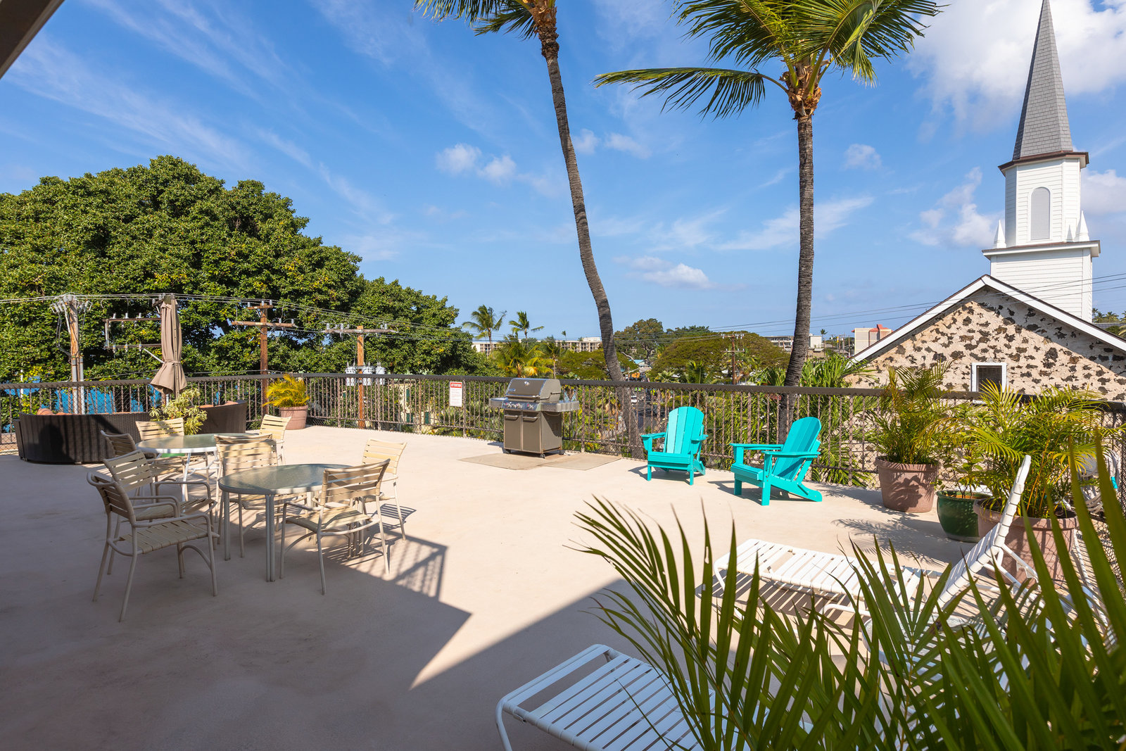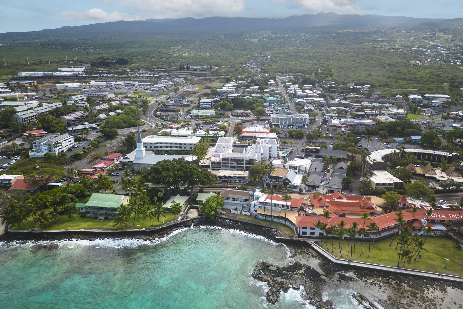 Across Ali’i Drive from Kailua Bay, the Kona Inn and historic Hulihe’e Palace.