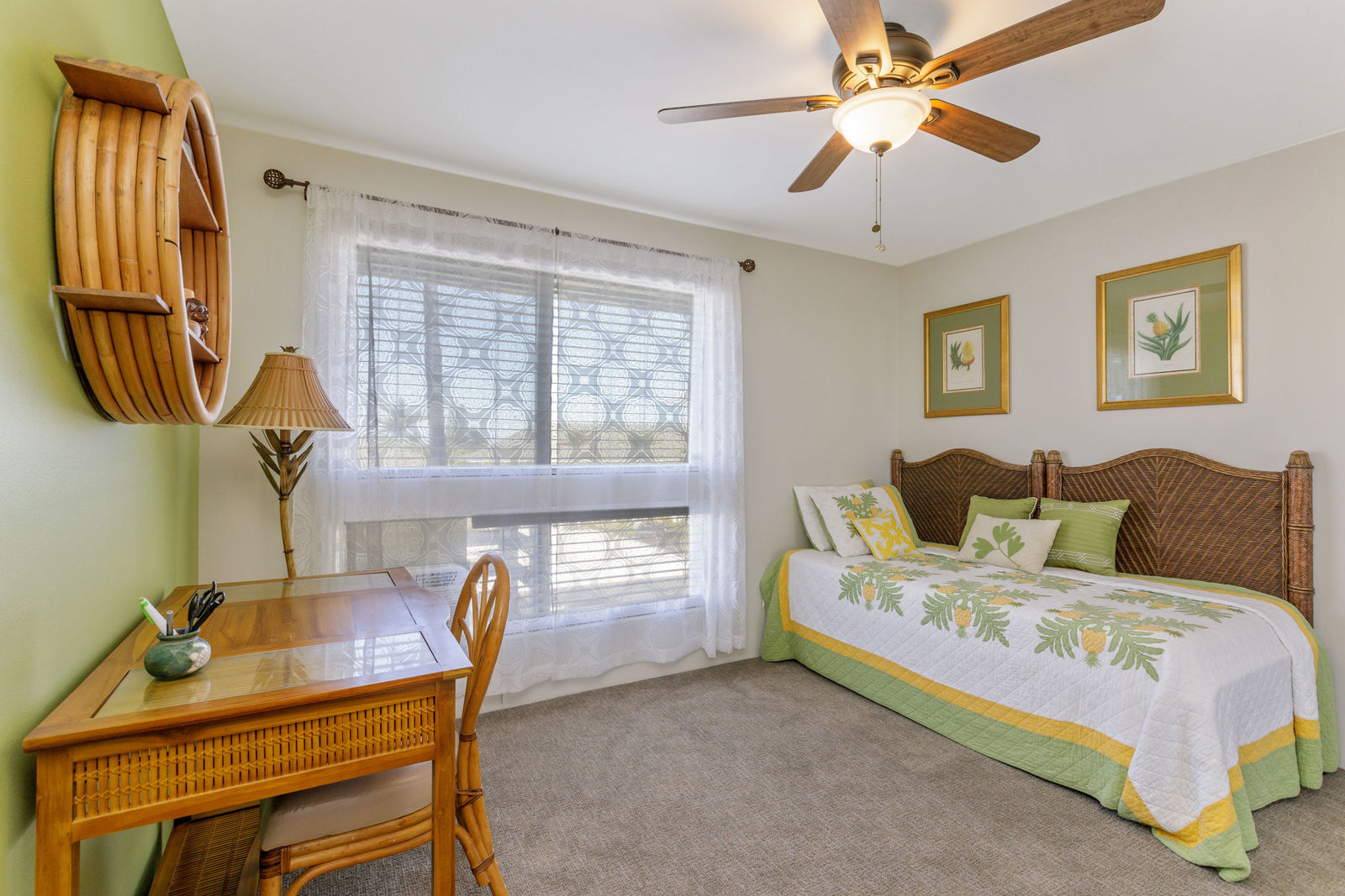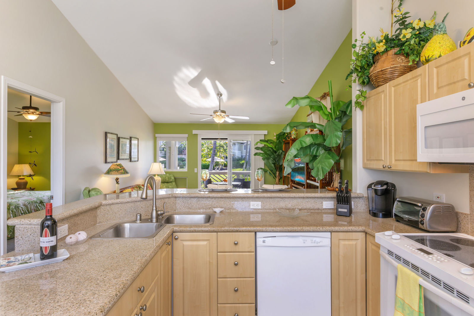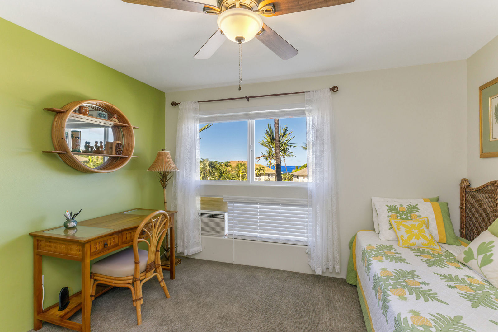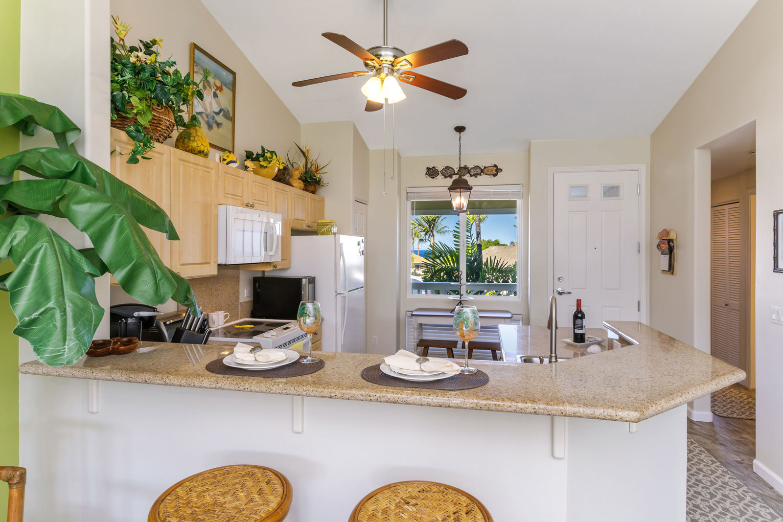 Partial ocean view is visible from the front porch, kitchen dining nook and guest bedroom.