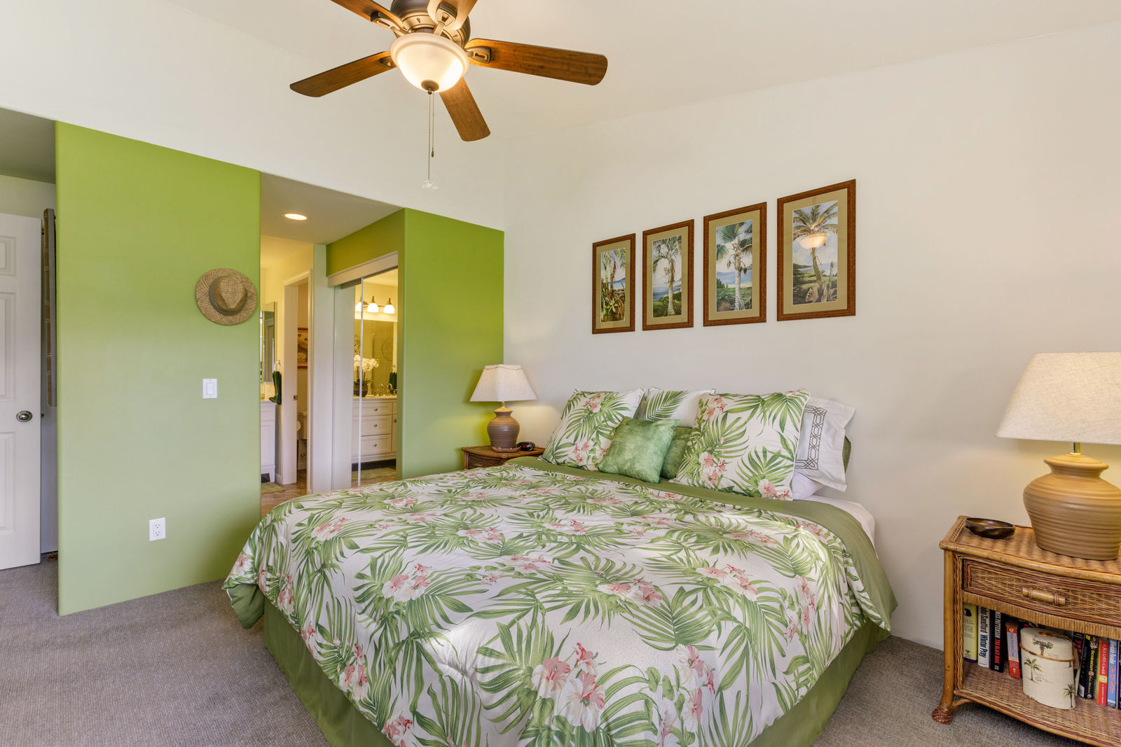 Ceiling fans and breezes for flow through ventilation, plus air conditioning in bedrooms.