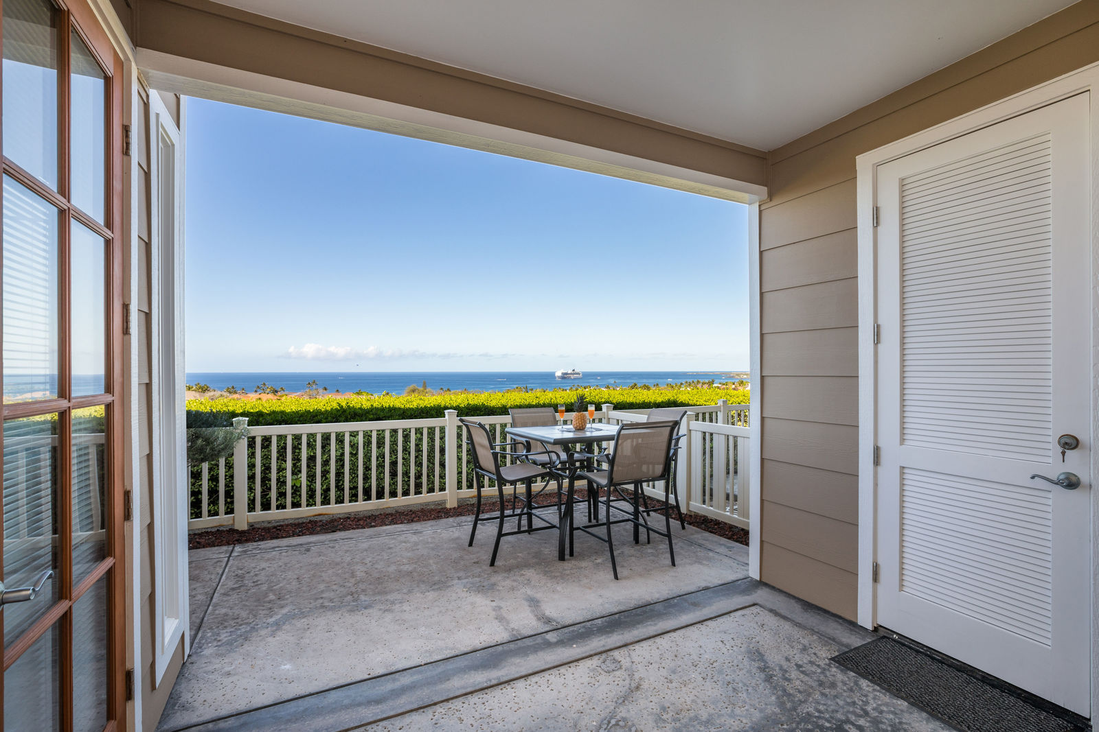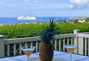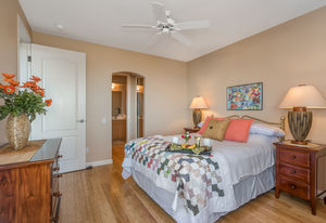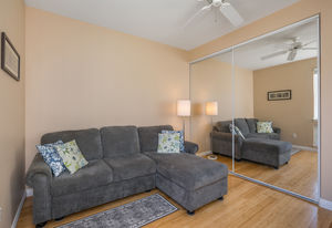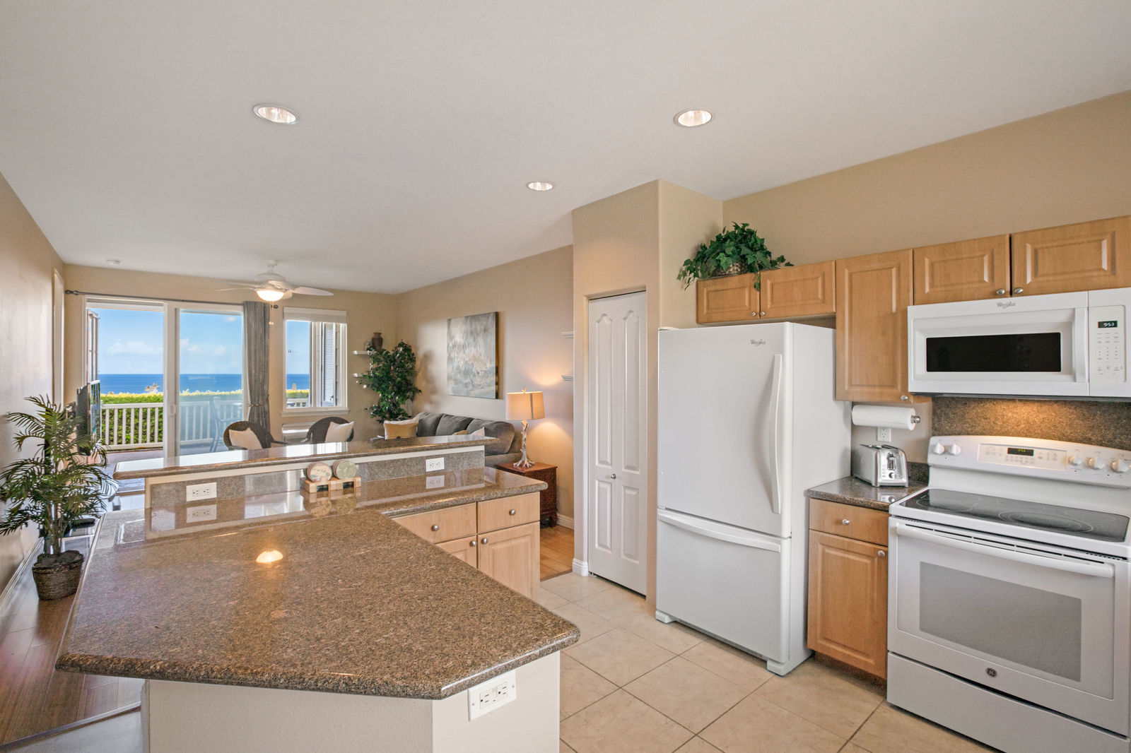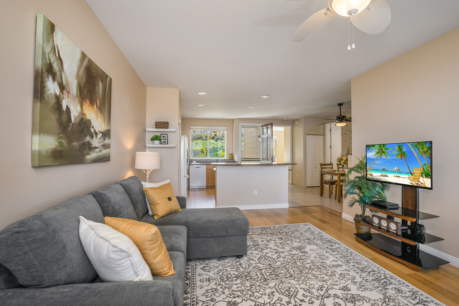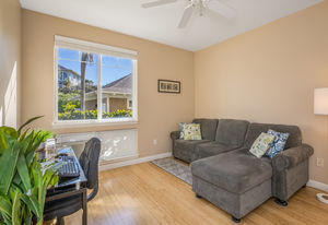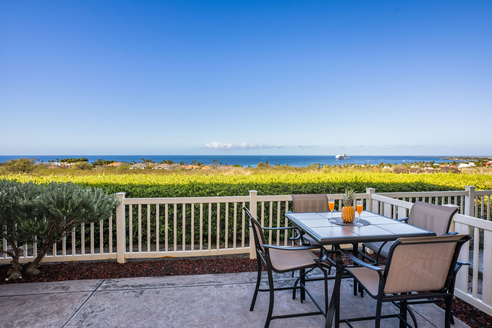 Amazing Ocean Views from this spacious apartment with huge patio and ginormouse ocean views. Exceptional floor plan with kitchen, living, dining area, 2bedroom/2bathroom. Upgraded with bamboo flooring, newer appliances, new Hunter Douglas Blinds throughout. Open floor plan boasts 9' ceilings and most rooms look out to the beautiful Pacific Ocean. Located in a small gated complex, this is a condo that feels like a home. Don't miss out on this special property located close to shopping, restaurants and the beach yet far enough away for peace and quiet. Single car garage and additional deeded parking stall included. The complex offers a community garden, Securely gated, pool, spa, work out room and BBcue area. The apartment is offered turnkey furnished, staging items excluded.