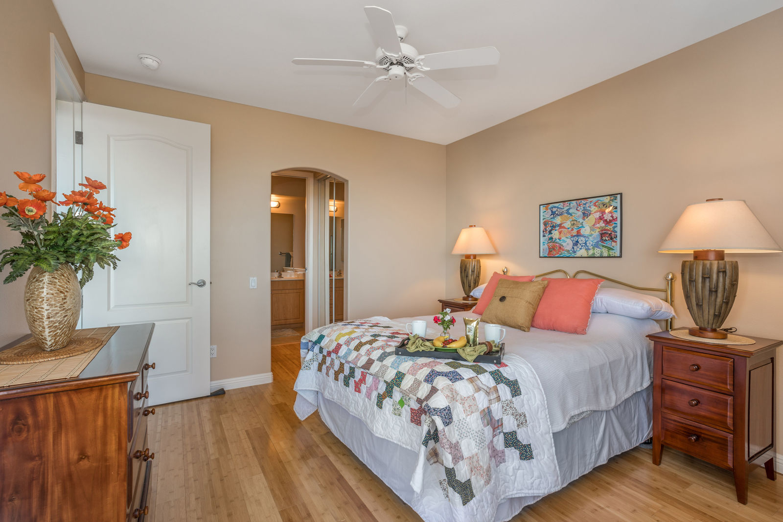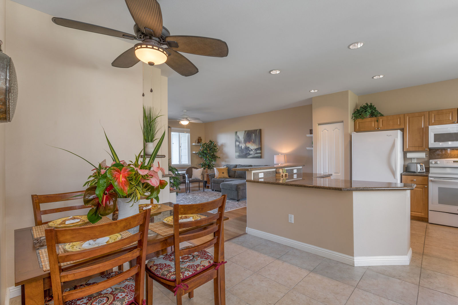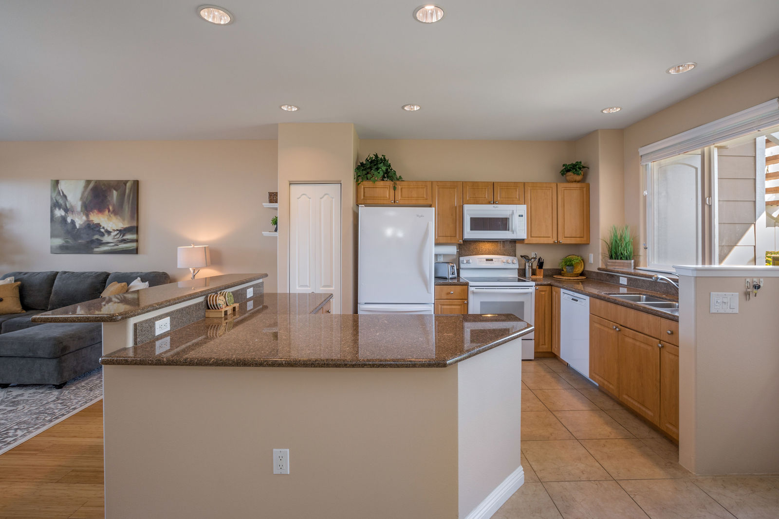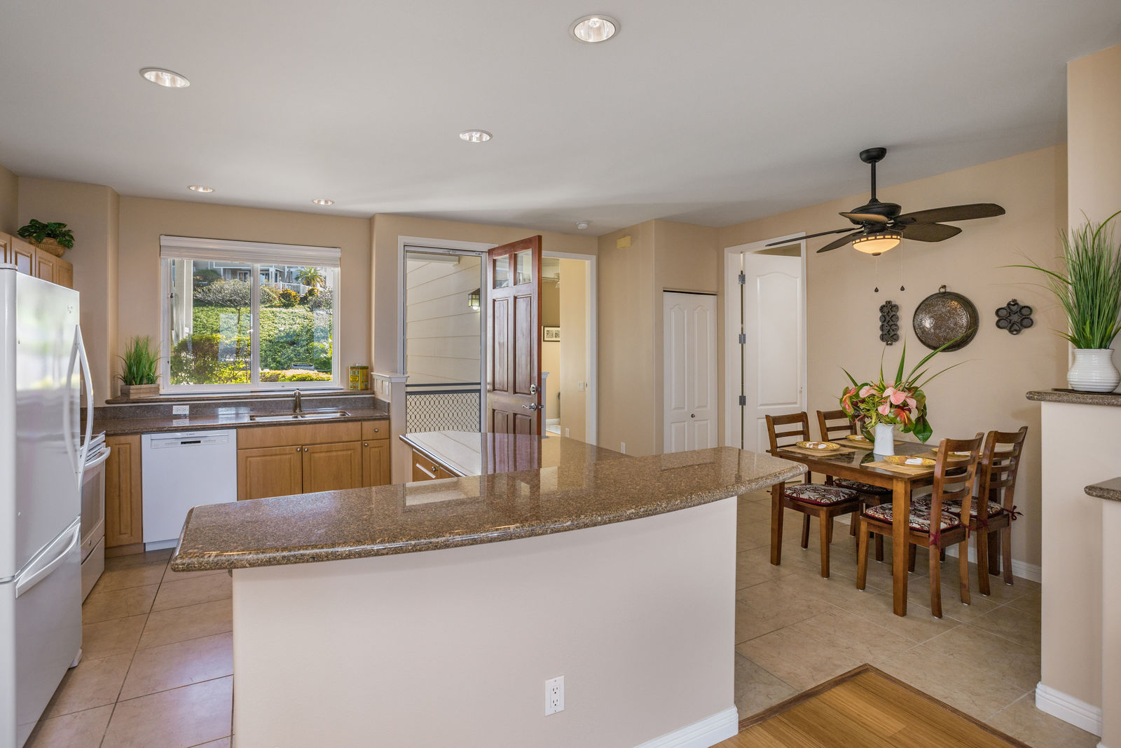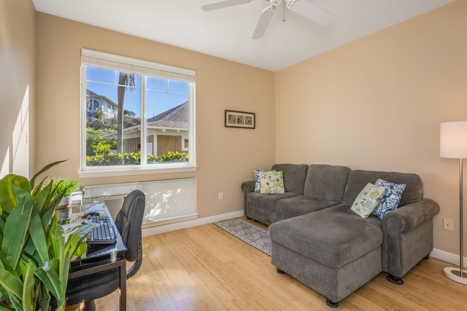Amazing Ocean Views from this spacious apartment with huge patio and ginormouse ocean views. Exceptional floor plan with kitchen, living, dining area, 2bedroom/2bathroom. Upgraded with bamboo flooring, newer appliances, new Hunter Douglas Blinds throughout. Open floor plan boasts 9' ceilings and most rooms look out to the beautiful Pacific Ocean. Located in a small gated complex, this is a condo that feels like a home. Don't miss out on this special property located close to shopping, restaurants and the beach yet far enough away for peace and quiet. Single car garage and additional deeded parking stall included. The complex offers a community garden, Securely gated, pool, spa, work out room and BBcue area. The apartment is offered turnkey furnished, staging items excluded.