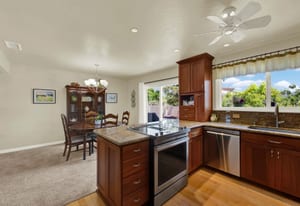 Step inside to a beautifully remodeled kitchen where custom-crafted cabinetry and sleek stainless steel appliances elevate both form and function—perfect for hosting intimate dinners or lively gatherings. The warmth of the fireplace draws you into the living space, while just beyond, the expansive backyard becomes your own private escape. Imagine morning coffee just outside your primary suite, evenings under the stars in a future hot tub already plumbed and waiting, and weekends spent enjoying the generous outdoor space.