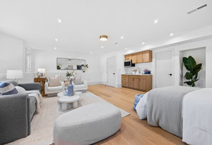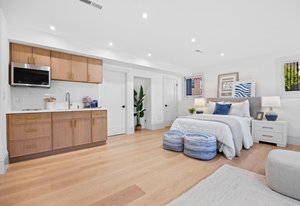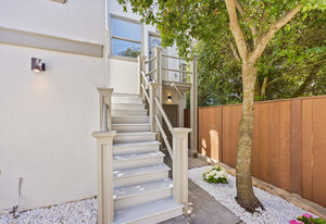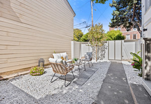 The attached 2-car garage includes newly poured concrete, a large-capacity gas tankless water heater with all-new copper piping, and a 220V outlet ready for EV charging. Just beyond the garage, you'll find a separate storage room and a spacious flex room with direct access to the backyard: ideal for a home gym, workshop, or creative studio. Enclosed by a newly constructed 6-foot privacy fence, the thoughtfully designed backyard offers a serene and secluded oasis, a perfect setting for elegant outdoor entertaining or quiet moments of relaxation amidst the vibrancy of the city.