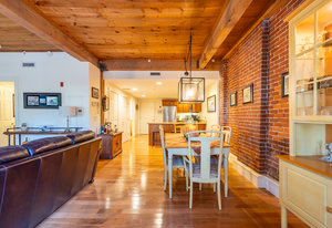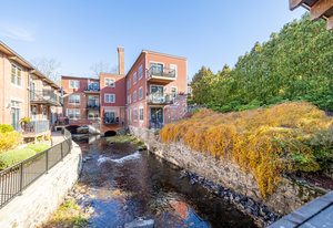 Welcome to Benjamin Chase Mill — where historic charm meets modern comfort. This gorgeous, well-kept single-level unit offers the perfect blend of character, convenience, and serenity. Enjoy tranquil stream views from your private deck and living room, creating an inviting space to unwind. The interior showcases exposed brick, original beams, and picturesque wood ceilings that highlight the building’s rich mill heritage. The restoration of this former woodworking mill was masterfully completed, preserving the canal that channels Beaver Brook through the beautifully landscaped grounds.