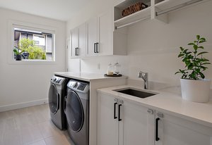 The triple-bay garage is a rare find in this neighbourhood. Wired with 240v outlets for electric vehicles or shop equipment and enough storage space to satisfy any workshop enthusiast. The suite is ideally located above the garage, with its own entrance and parking area, allowing the suite/home occupants to coexist in harmony without any crossover. Other highlights of this home include a fully ducted heat pump for efficient heating/cooling, a natural gas on-demand hot water system, in-ground irrigation with professional low-maintenance landscaping, and a south-facing backyard patio that is fully fenced, child/pet-friendly, and ideal for entertaining, gardening, or to relax on summer days.