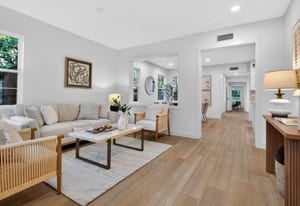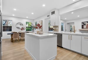 Welcome home to this rare opportunity in the Front Street District, zoned for both residential and business use. This 5 bedroom 3.5 bath home has been completely remodeled from head to toe. The flexible layout includes a proper family home with all the amenities, PLUS a separate and private ground-level suite (5th bedroom) with its own entrance and bath, ideal for an office, studio, or rental option. You love the all new luxury hardwood flooring, completely custom kitchen with brand new cabinetry, new appliances, Taj Mahal counter tops, primary bath remodel with stand alone tub and separate shower, fresh paint, and more. The open layout flows seamlessly and allows a generous amount of light. Upstairs, you’ll find a spacious primary suite with a remodeled bath, a spacious closet, three additional bedrooms, and a laundry room with sink and storage. This home has also been repiped and has brand-new HVAC systems. You’ll enjoy entertaining in your large spacious yard. Endless privacy on a corner lot and a three car garage. This home is ideally located close to schools, pools, tennis courts, and many other amenities. Don't miss this one, it won’t last long!