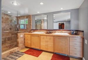 This picturesque 3-bedroom, 2.5-bath cul-de-sac home with attached garage features a flexible floor plan that includes an entranceway, spacious living and dining areas with fireplace, custom gourmet kitchen with exquisite details, custom breakfast nook and office area, and a primary bedroom retreat with a spa-like ensuite bathroom and awesome walk-in closet. Thoughtfully reimagined and thoroughly upgraded, this canyon rim residence compelled an appraiser to establish the effective age at just one-third of the actual age! This value-packed opportunity rivals the competition with both the extensive list of upgrades and, most especially, the thoughtful design and master woodworking craftsmanship reflected throughout. Taken down to the studs in 2004, this house sports newer (copper) plumbing, electrical, windows and doors, a water heater, cabinetry, flooring, and whole-house insulation (including interior walls.) The roof was replaced, the main sewer line repaired, the chimney repaired, retaining walls added, and so much more. The oversized canyon lot offers views of Mission Valley, provides additional parking, features a spacious patio for outdoor living, presents gardening opportunities, and still has room for an additional garage and potential for an ADU. First time on the market since 2000, and priced to sell at $40,000 less than the June 2024 appraised value of $1,250,000.