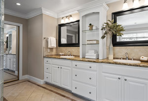 The expansive 3-car garage comes equipped with built-in cabinetry and Onrax overhead storage for maximum organization.