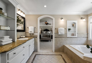 Nestled in one of the most exclusive neighborhoods, this stunning residence offers the perfect blend of elegance, functionality, and resort-style living. From the moment you arrive, you'll be captivated by the soaring vaulted ceilings, designer light fixtures, fresh paint, and new carpet throughout.