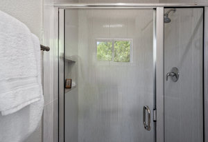 Upstairs, you'll find four generously sized bedrooms, including a luxurious primary suite with a spa-like bath complete with a glass-enclosed walk-in shower and a large walk-in closet.
