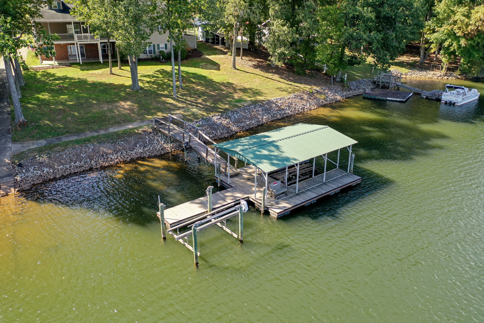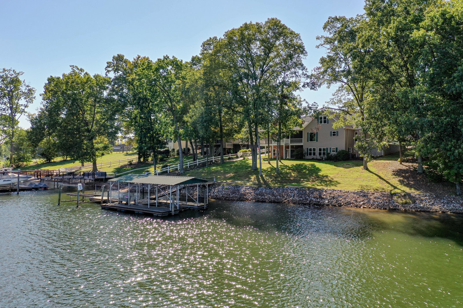 One unique feature of this property is its lakefront location complete with an extra-large dock with deep water. Water enthusiasts will appreciate the two boat lifts and private boat launch providing direct access to aquatic adventures right from your backyard.