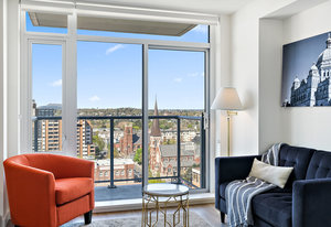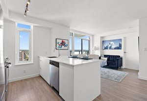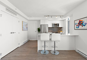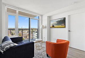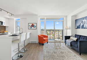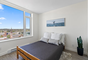 Welcome to 1806-845 Johnson Street, the heart of Victoria's vibrant downtown. This fully rentable unit is perfect for young professionals, couples, or small families looking for a convenient and stylish living space. Enjoy breathtaking views of the inner harbour, downtown, and Mt Baker. The modern kitchen features stainless steel appliances, and stone countertops. The living room is cozy and inviting, offering a comfortable space to relax and take in the endless views. This condo also includes a secure underground parking space and in-suite laundry for added convenience. But that's not all - the Vivid Building's rooftop is truly a standout feature, offering a spectacular entertainment area complete with a fire bowl, BBQs, dog walk, kids play area, and even a vegetable garden. This is the perfect spot to relax and take in all that Victoria has to offer, whether you're entertaining friends or enjoying a quiet night under the stars. This condo offers the perfect blend of comfort, luxury, and convenience, making it an ideal choice for those seeking the best of urban living.