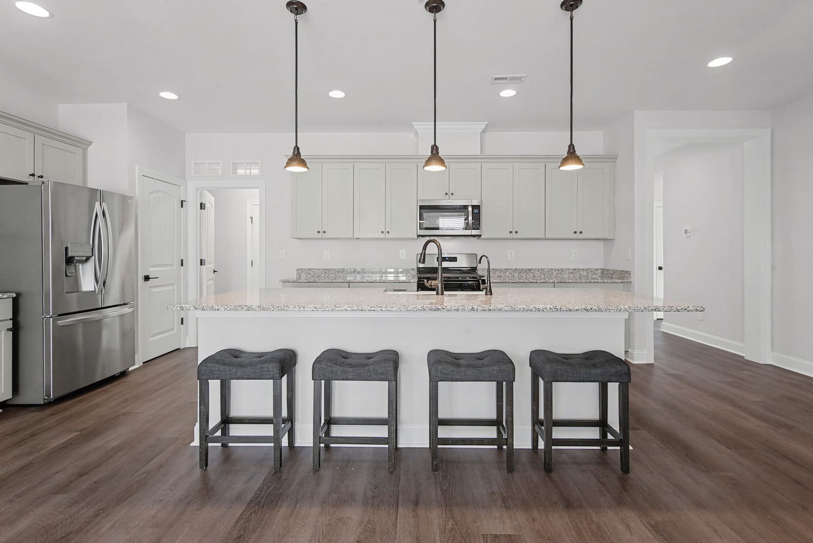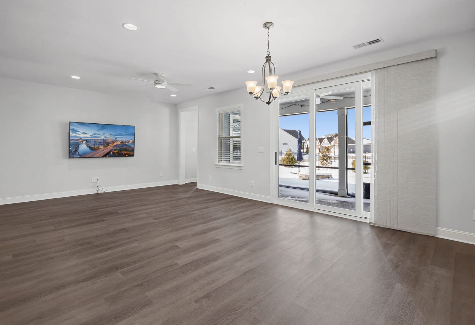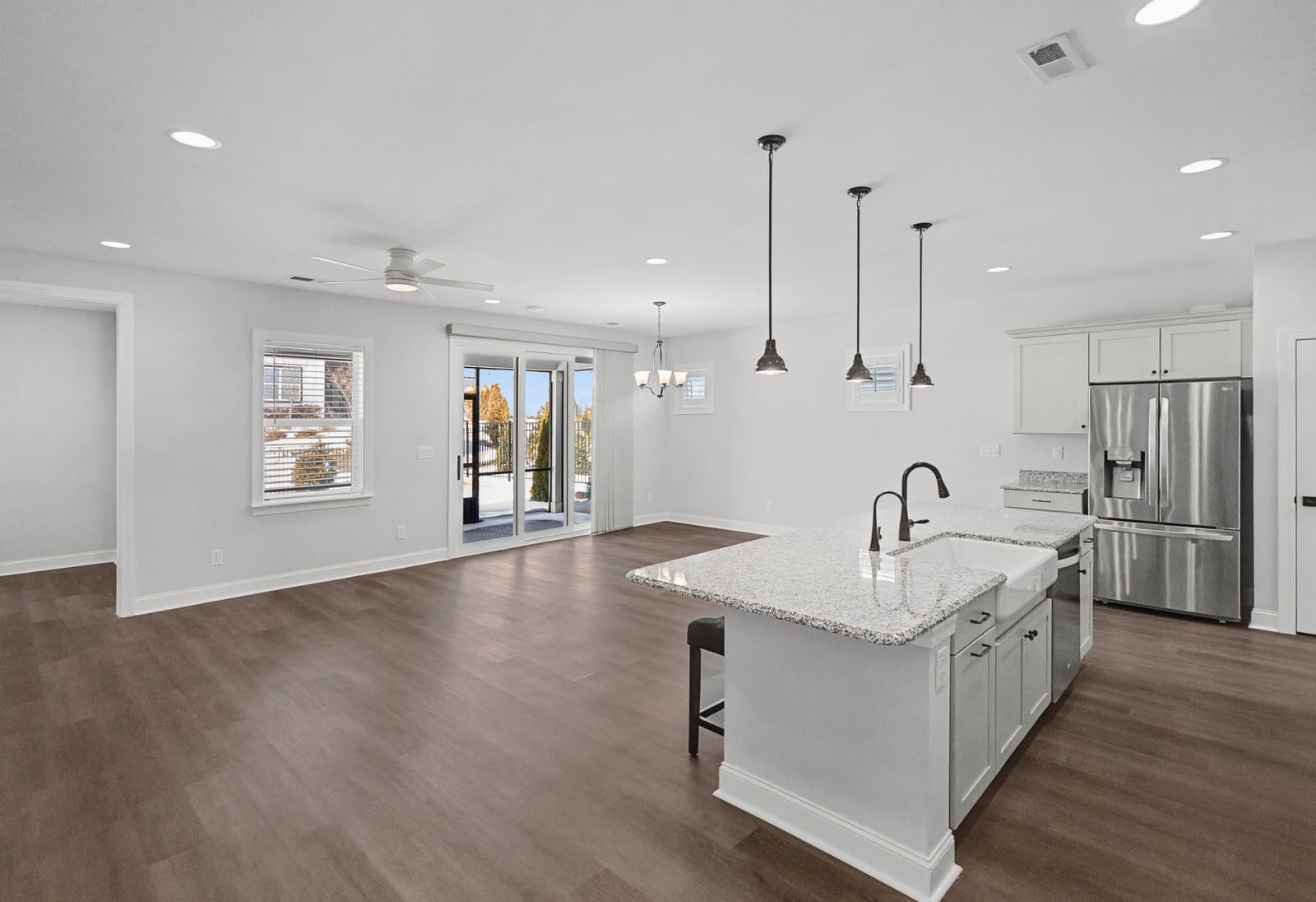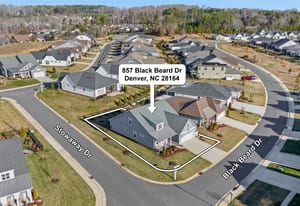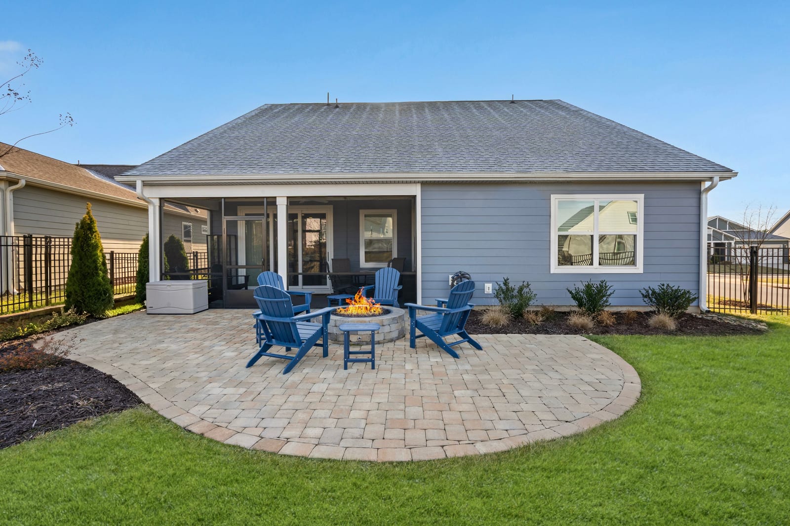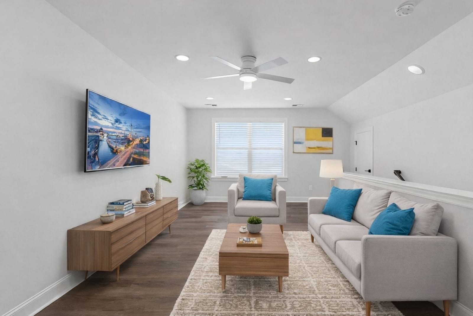 The Affirm Loft features a generous multi purpose, open, flowing floor plan. Exceptional kitchen with amazing storage/counter space, SS appliances, refrigerator, gas range, tile back splash and island breakfast bar that opens to the great room with wall mounted TV included. Dining area with wall of glass opens to a covered and screened Lanai that features an extended paver patio gas fire pit and grill connection plus a fenced yard for added entertaining options. LVP flooring throughout (no carpet) the home. Recessed & designer lighting, custom blinds and a multi use flex/office space with doors adds privacy. Primary bedroom includes an en-suite bath with dual sink vanity, walk in closet & tiled shower. Main floor has an additional guest bedroom with central bath, laundry room w/added cabinetry, (washing machine and dryer included) that connects to the 2 car extended garage. Upstairs is highlighted with an additional guest suite & full bath, 2 walk in closets providing excellent storage & family room area to spread out and relax (wall mount TV included). Trilogy Membership include Freedom Boat Club on Lake Norman plus award winning amenities