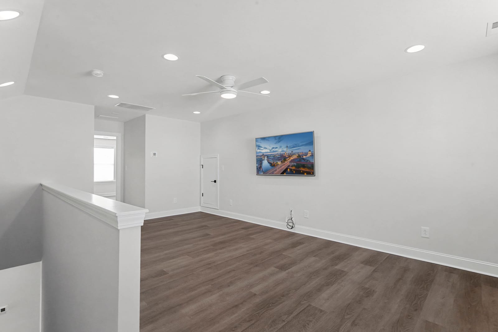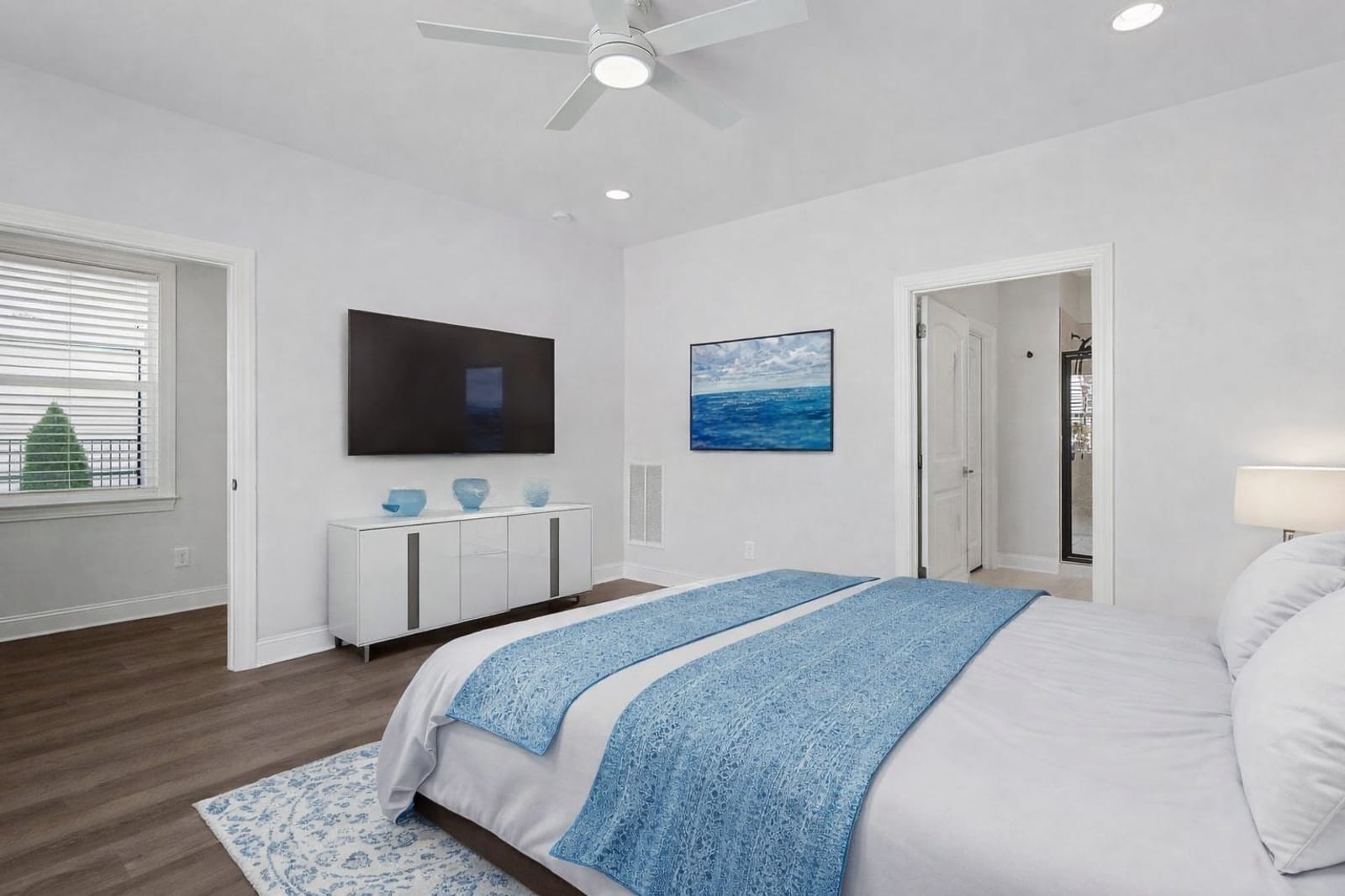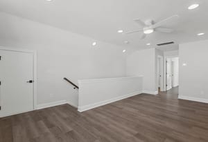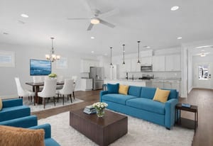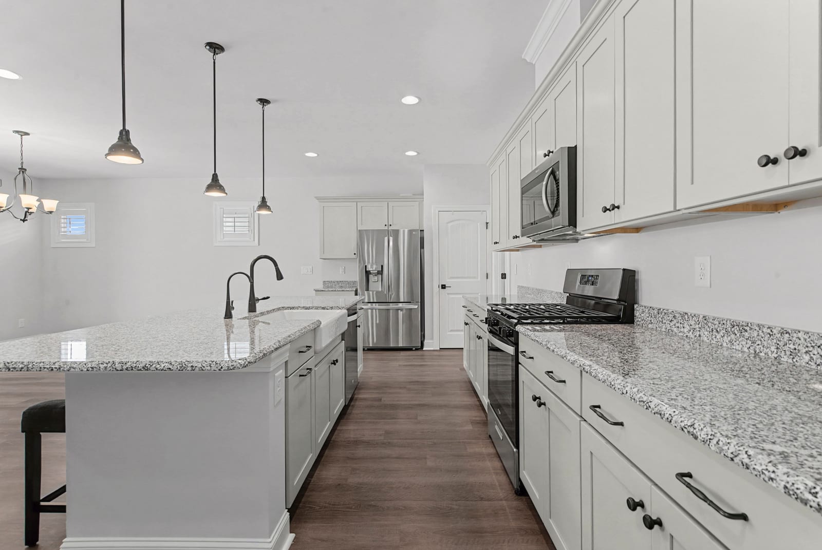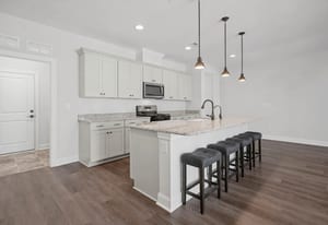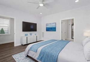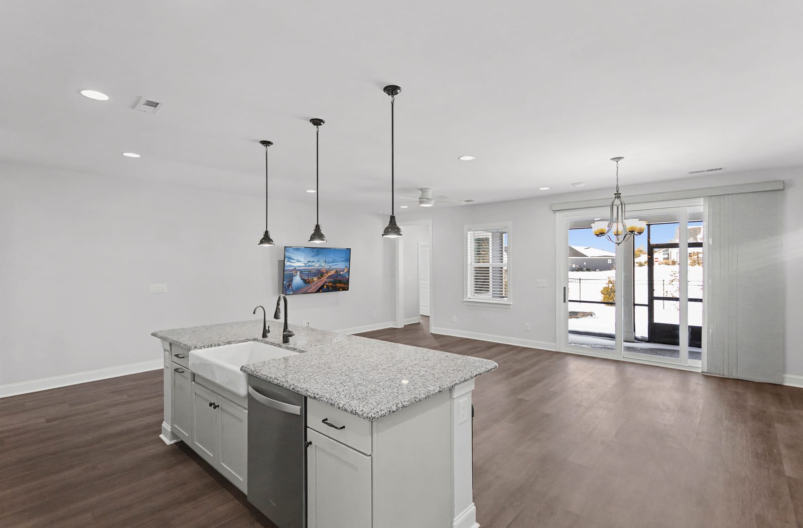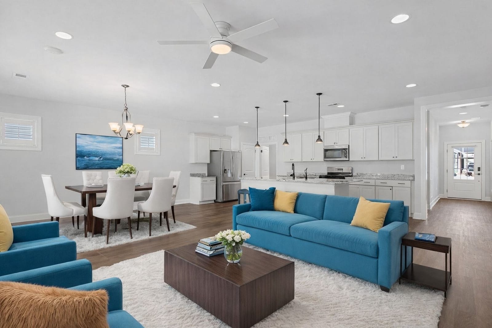The Affirm Loft features a generous multi purpose, open, flowing floor plan. Exceptional kitchen with amazing storage/counter space, SS appliances, refrigerator, gas range, tile back splash and island breakfast bar that opens to the great room with wall mounted TV included. Dining area with wall of glass opens to a covered and screened Lanai that features an extended paver patio gas fire pit and grill connection plus a fenced yard for added entertaining options. LVP flooring throughout (no carpet) the home. Recessed & designer lighting, custom blinds and a multi use flex/office space with doors adds privacy. Primary bedroom includes an en-suite bath with dual sink vanity, walk in closet & tiled shower. Main floor has an additional guest bedroom with central bath, laundry room w/added cabinetry, (washing machine and dryer included) that connects to the 2 car extended garage. Upstairs is highlighted with an additional guest suite & full bath, 2 walk in closets providing excellent storage & family room area to spread out and relax (wall mount TV included). Trilogy Membership include Freedom Boat Club on Lake Norman plus award winning amenities