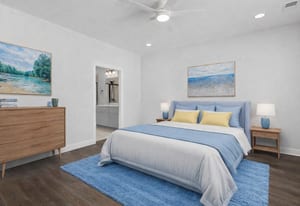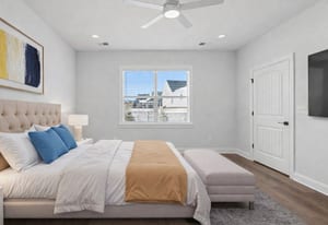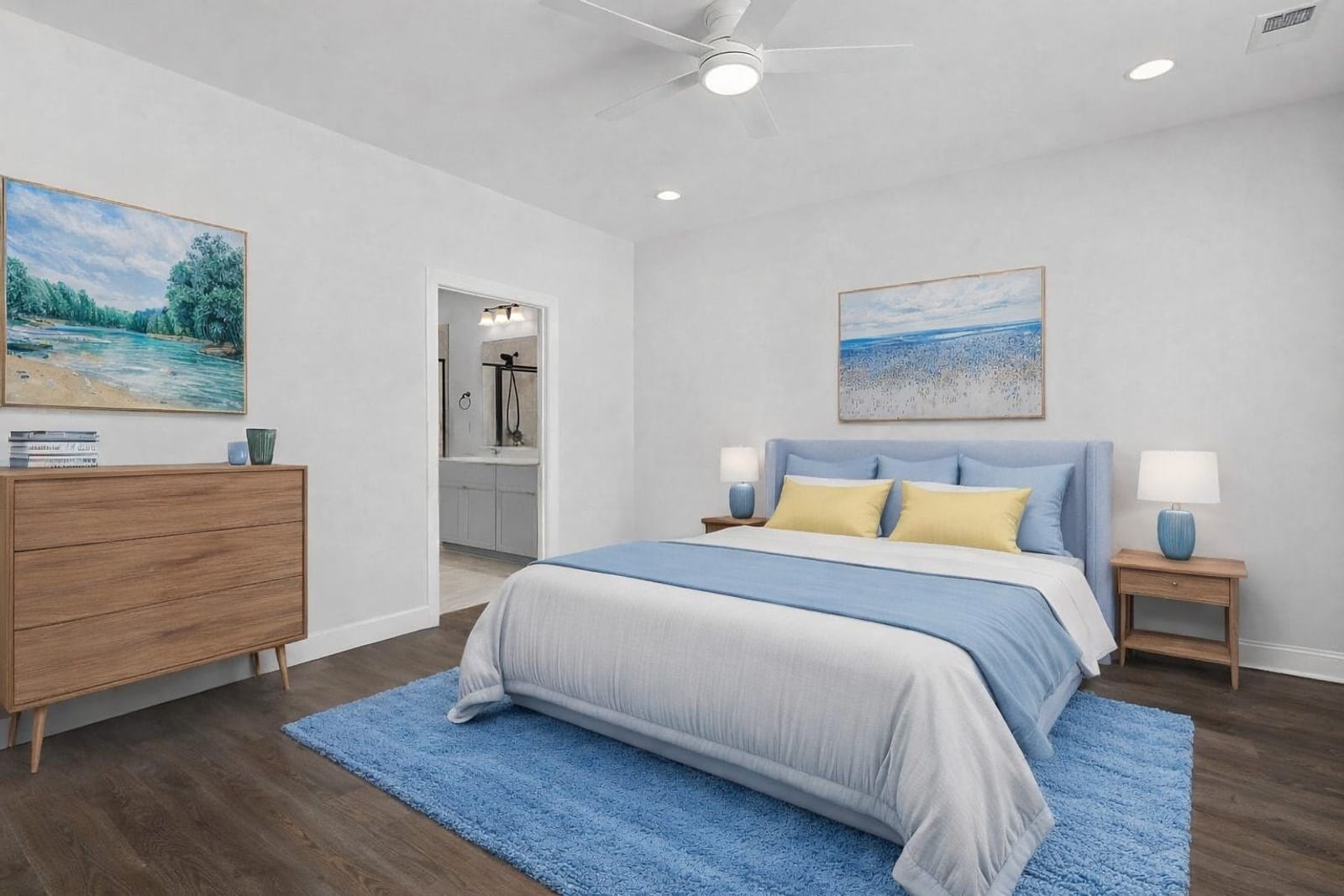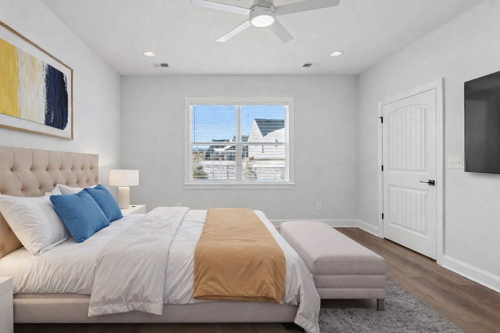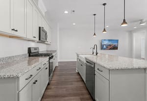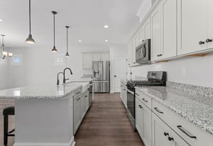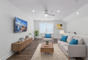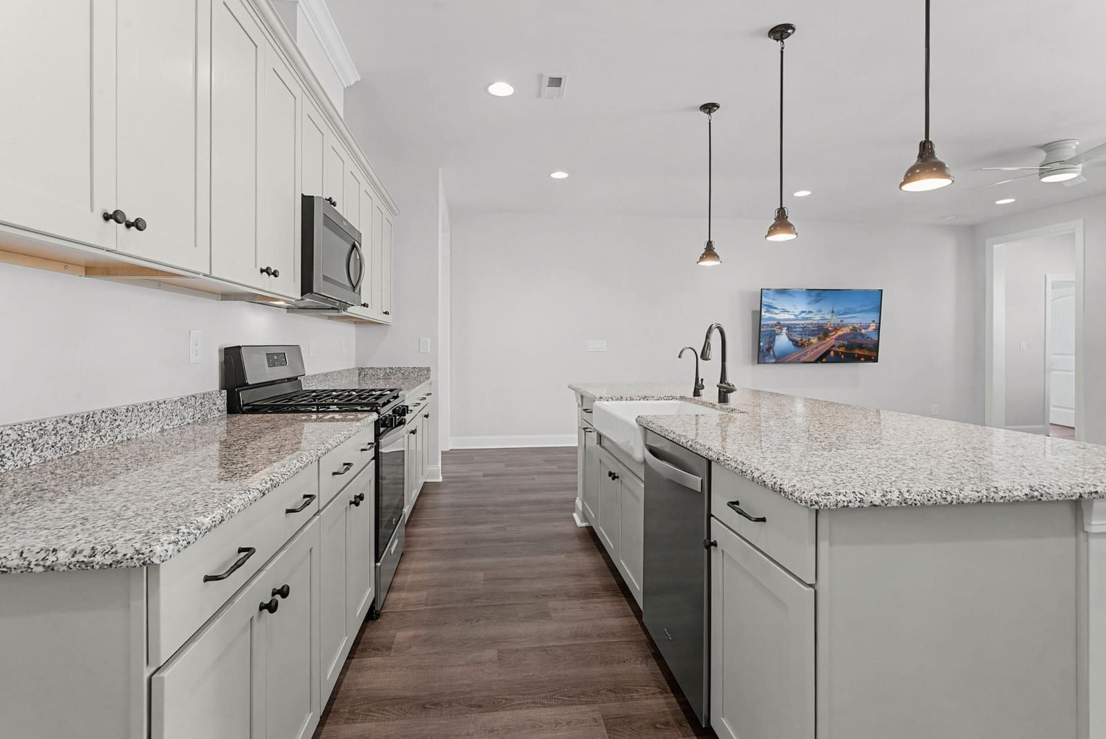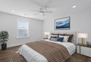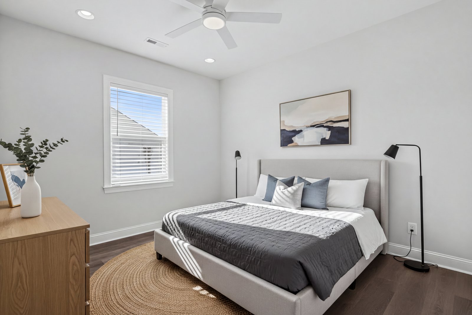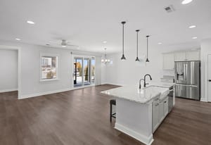 The Affirm Loft features a generous multi purpose, open, flowing floor plan. Exceptional kitchen with amazing storage/counter space, SS appliances, refrigerator, gas range, tile back splash and island breakfast bar that opens to the great room with wall mounted TV included. Dining area with wall of glass opens to a covered and screened Lanai that features an extended paver patio gas fire pit and grill connection plus a fenced yard for added entertaining options. LVP flooring throughout (no carpet) the home. Recessed & designer lighting, custom blinds and a multi use flex/office space with doors adds privacy. Primary bedroom includes an en-suite bath with dual sink vanity, walk in closet & tiled shower. Main floor has an additional guest bedroom with central bath, laundry room w/added cabinetry, (washing machine and dryer included) that connects to the 2 car extended garage. Upstairs is highlighted with an additional guest suite & full bath, 2 walk in closets providing excellent storage & family room area to spread out and relax (wall mount TV included). Trilogy Membership include Freedom Boat Club on Lake Norman plus award winning amenities