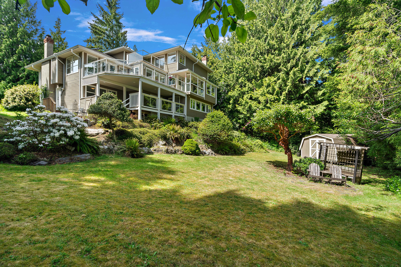 Nestled on a quiet cul-de-sac in desirable Dean Park Estates, this executive 3 bed, 3 bath plus den home offers privacy and a bright ambiance. A grand foyer with a winding staircase welcomes you, leading to the oasis-like primary suite with a huge walk-in closet and new luxurious ensuite. Enjoy ocean glimpses from this level. The main floor boasts a bright, open kitchen with granite counters, ample storage, and a large family room. Find a separate dining room, a library with built-ins, and a living room with a cozy fireplace. Step out onto the main level sundeck, perfect for entertaining or relaxing. The lower level features new flooring, 2 additional bedrooms, a full bathroom, a ...