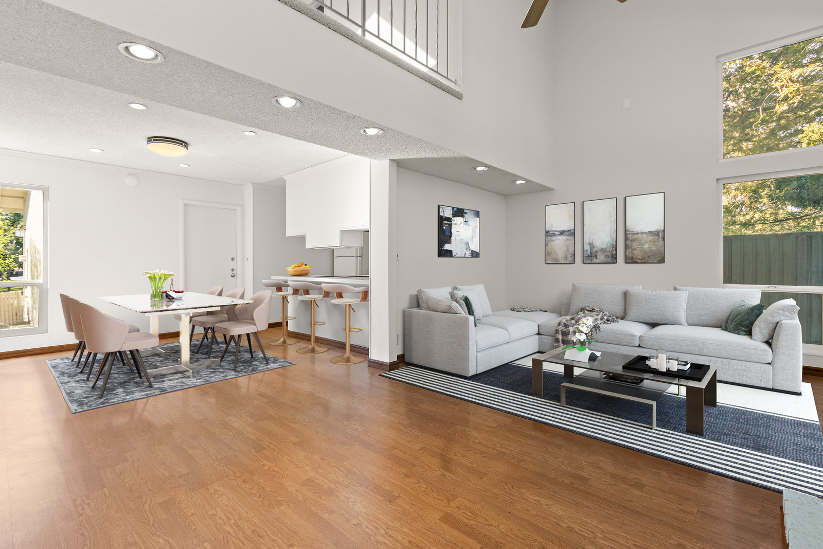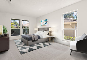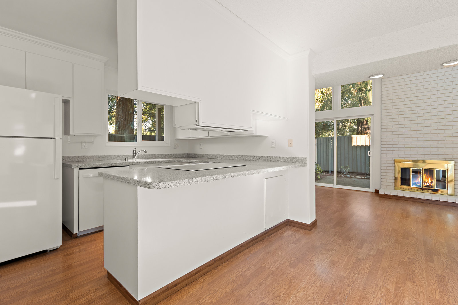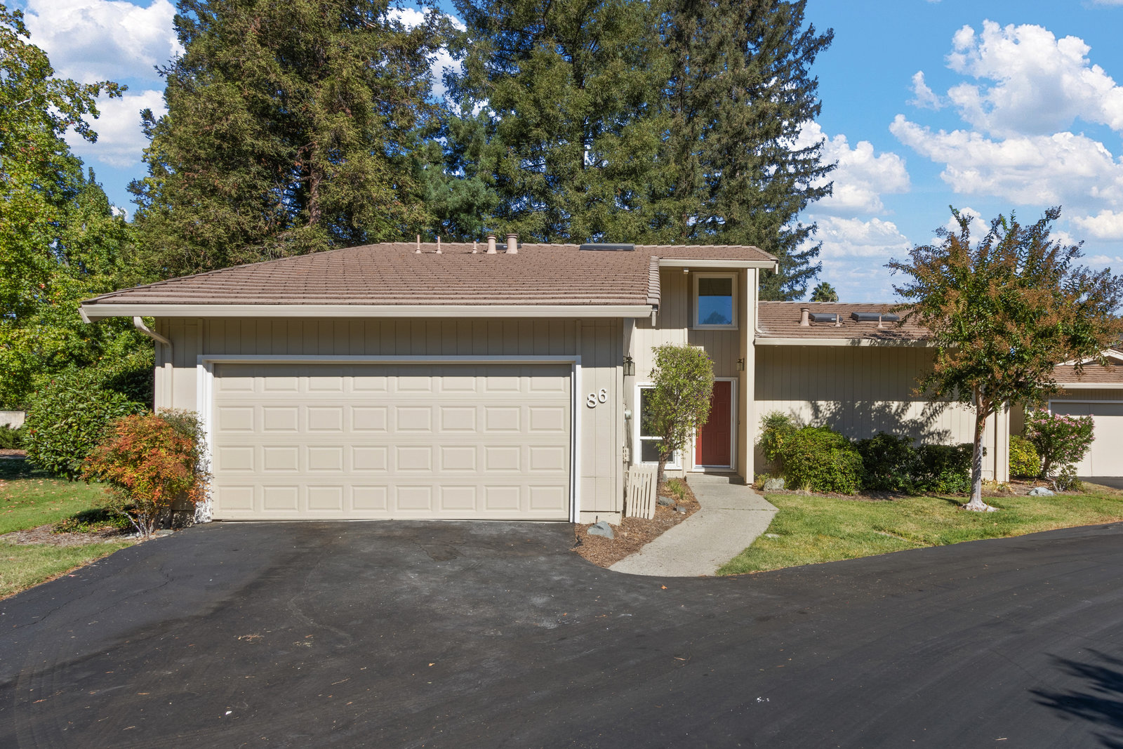 Beautiful home in sought-after Rolling Green community! Incredible location close to vibrant downtown Pleasant Hill. This home features a bright living area with large windows, vaulted ceilings and fireplace. The living area opens to a private back yard patio area expanding this living space perfect for relaxing outdoors or entertaining. Two bedrooms and bath downstairs with one featuring a walk in closet, skylight and access to bathroom shared with second downstairs bedroom. A large loft upstairs with high ceilings and skylight is perfect for an office, media room, additional sitting area and more. Not only does the upstairs feature the loft but also another bedroom with a large walk in closet and an additional bathroom. With fresh interior paint, recently installed carpet and flooring in the bathrooms, two car garage and lovely community pool and clubhouse access this home is ready to move in and enjoy! This is one of the detached homes in this townhome community. Some pictures of interior rooms have been virtually staged. This beautiful home will sell fast!