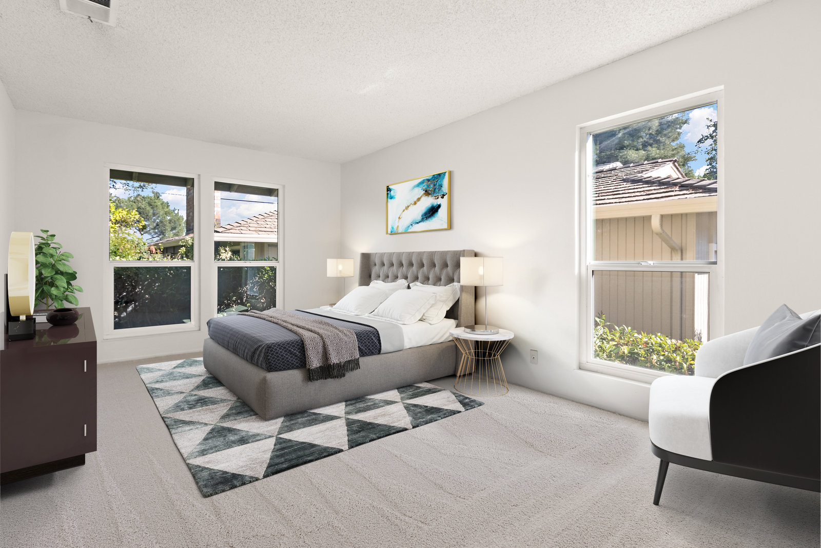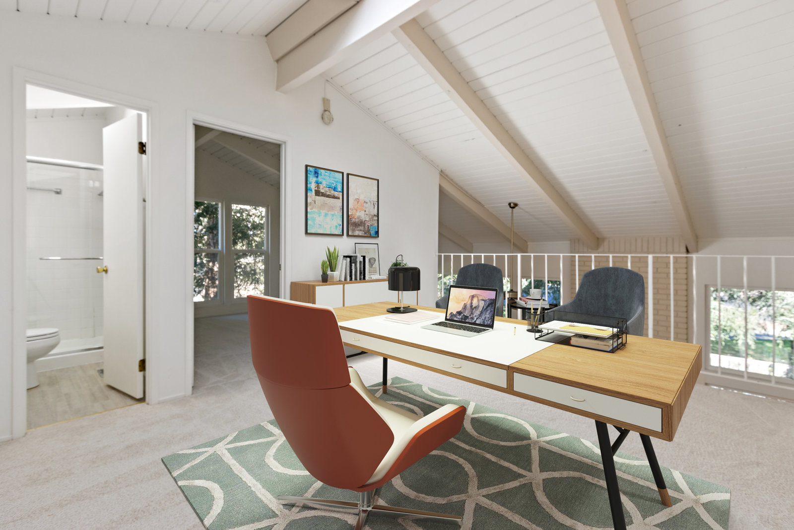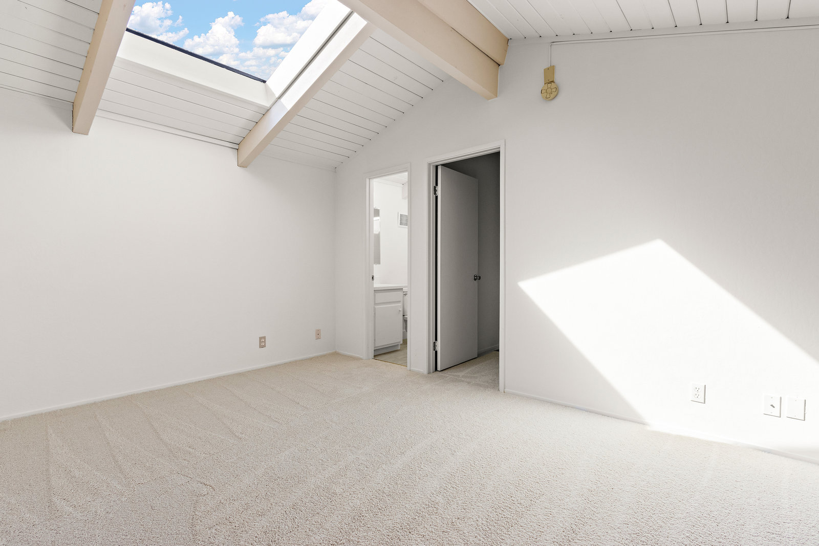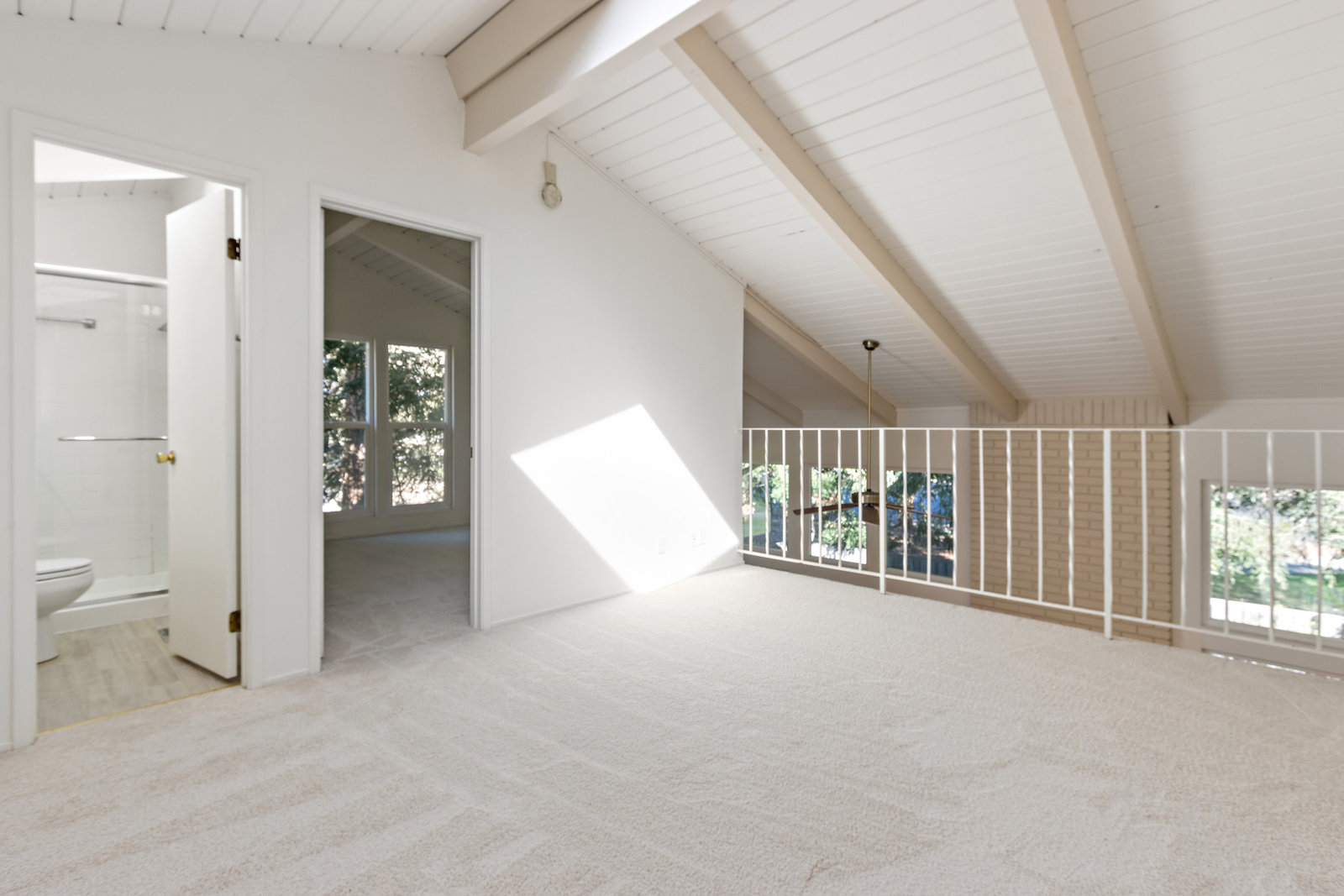 Beautiful home in sought-after Rolling Green community! Incredible location close to vibrant downtown Pleasant Hill. This home features a bright living area with large windows, vaulted ceilings and fireplace. The living area opens to a private back yard patio area expanding this living space perfect for relaxing outdoors or entertaining. Two bedrooms and bath downstairs with one featuring a walk in closet, skylight and access to bathroom shared with second downstairs bedroom. A large loft upstairs with high ceilings and skylight is perfect for an office, media room, additional sitting area and more. Not only does the upstairs feature the loft but also another bedroom with a large walk in closet and an additional bathroom. With fresh interior paint, recently installed carpet and flooring in the bathrooms, two car garage and lovely community pool and clubhouse access this home is ready to move in and enjoy! This is one of the detached homes in this townhome community. Some pictures of interior rooms have been virtually staged. This beautiful home will sell fast!