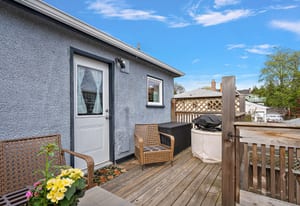 Charming home nested into the heart of Esquimalt. Steps away from the West Bay Walkway, all your shopping amenities, and the Esquimalt Recreation Centre. The main level offers two bedrooms with additional closet space in the primary, a cosy living room with electric fireplace, and a sun-filled kitchen overlooking the large deck & private backyard with ocean and Olympic Mountain views. Downstairs features a fully renovated office space, laundry mudroom-room, plus a studio-suite with separate entrance, perfect as a mortgage-helper. Outside, enjoy ample parking with a generous driveway and detached garage. Significant updates over recent years include a roof, 200-amp electrical upgrade, full drain tile replacement with sump-pump, and vinyl windows throughout. Natural gas is available at the house for future connection. Located in a family-friendly neighbourhood, this move-in ready home offers excellent value, flexibility, and income potential.