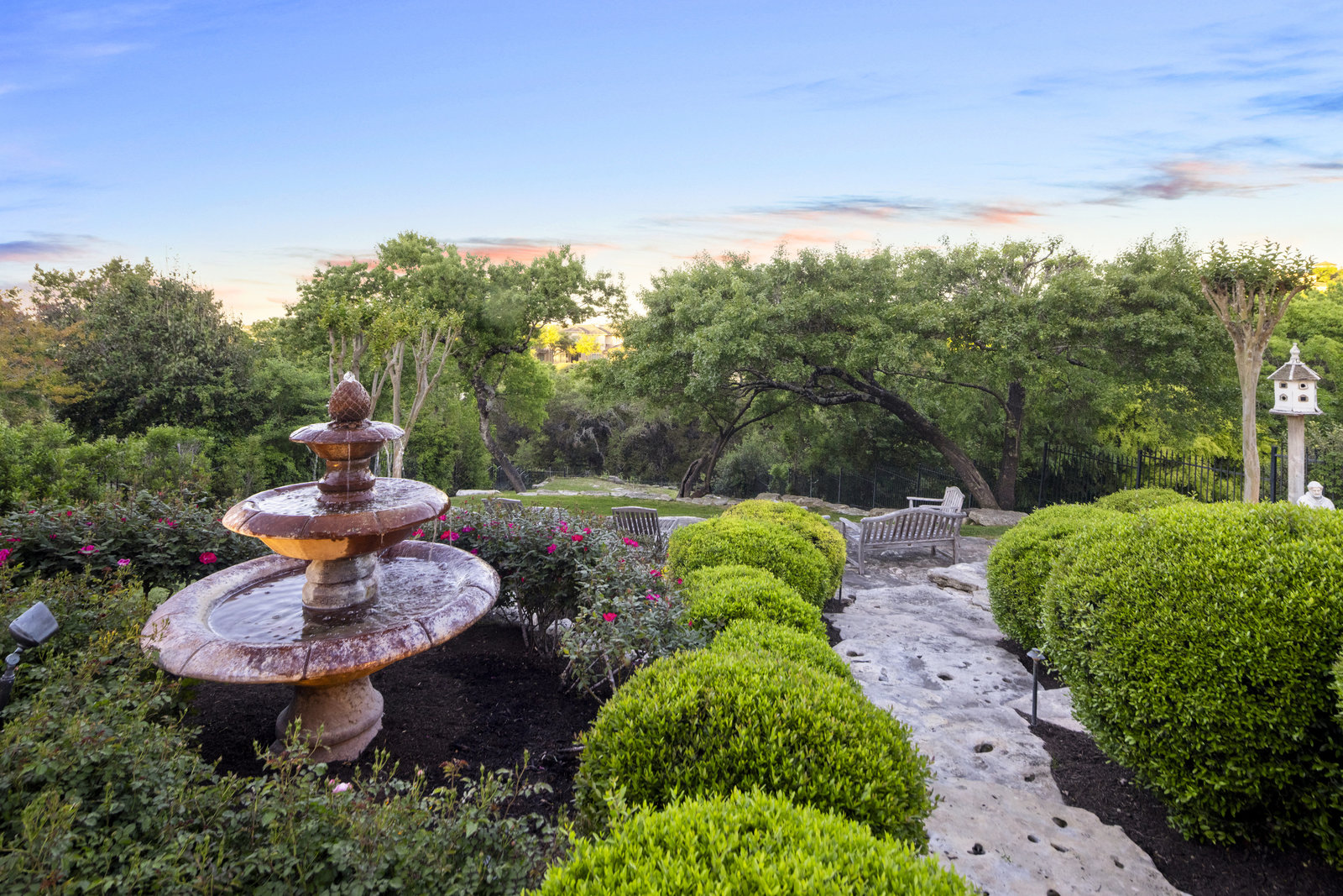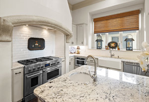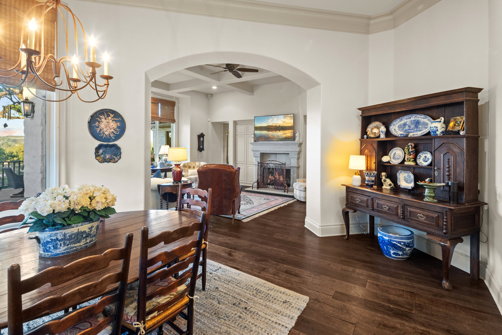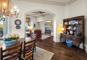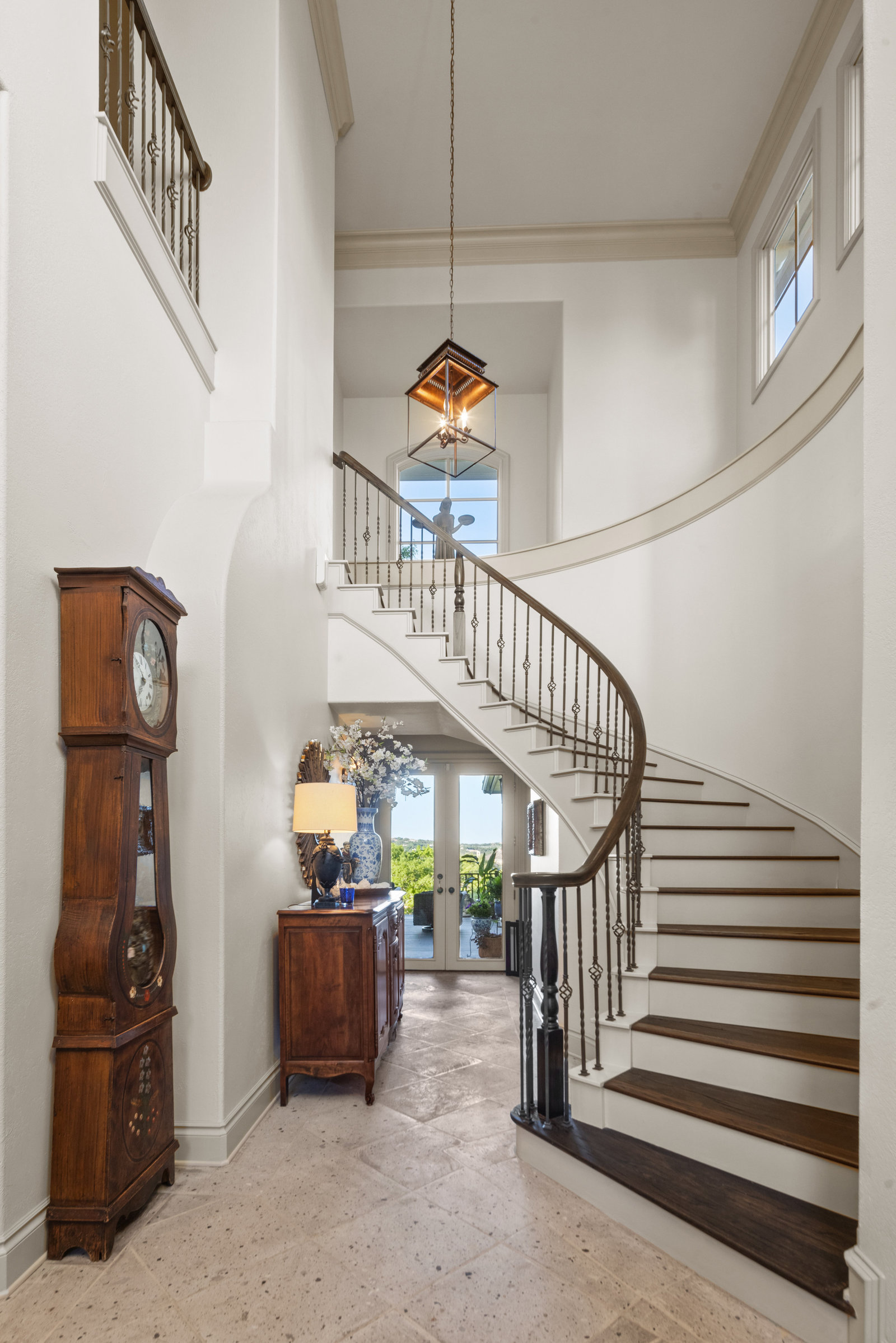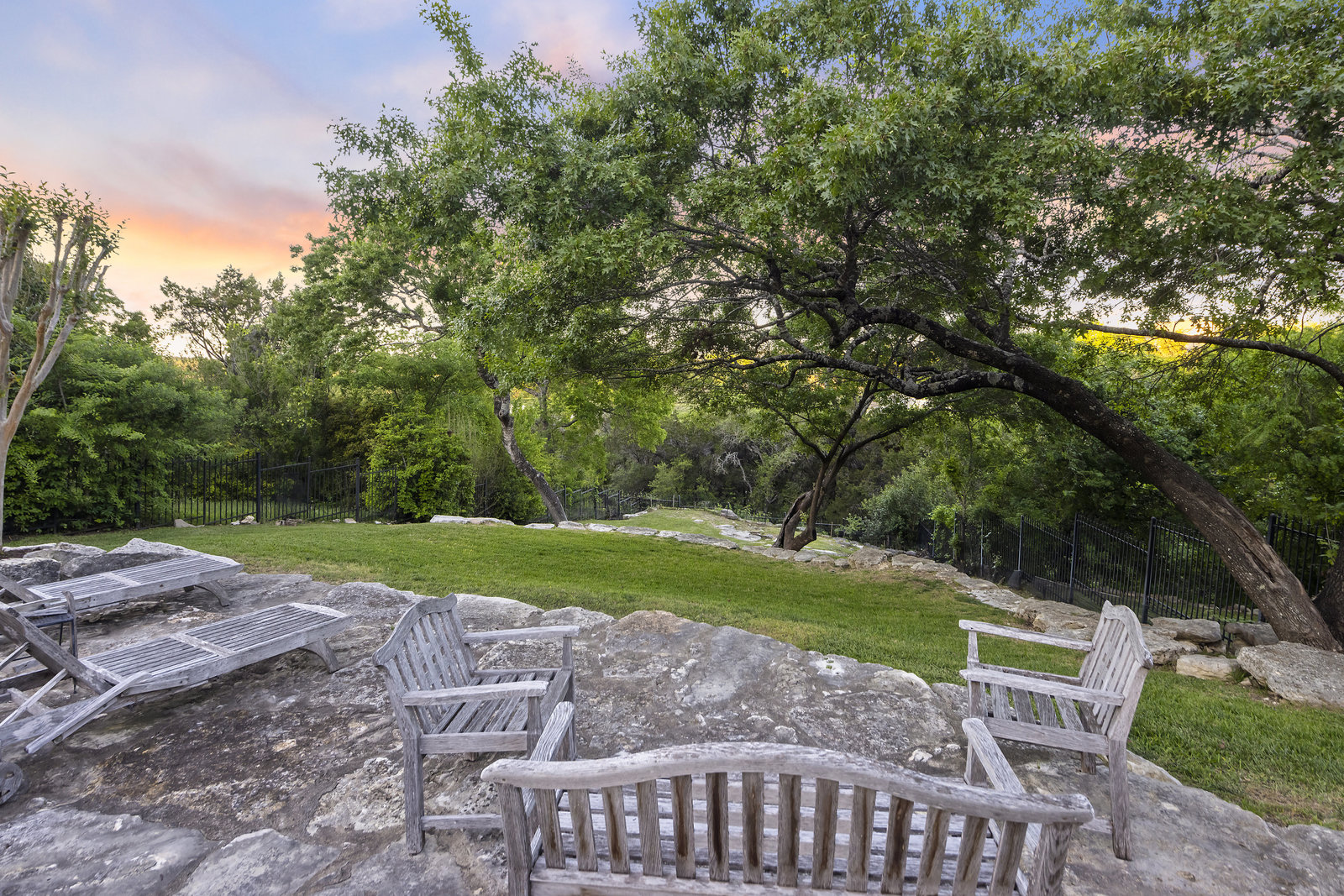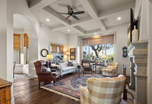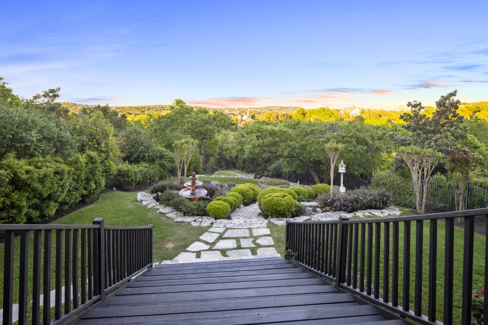 Welcome to 8862 Chalk Knoll Drive, a stunning Santa Barbara Style home built by Heyl Custom Homes. This well-appointed and meticulously maintained residence exudes elegance and luxury. Situated on a generous half acre lot with stunning views, this home is a rare find. Upon entering, you are greeted by a charming courtyard with a wood-burning fireplace, setting the tone for the exquisite features that await. The main level boasts a primary suite with a recently updated bathroom, free-standing tub, and massive closet space. Two separate living areas adorned with large windows and grand fireplaces create a warm and inviting atmosphere. The formal dining room provides an ideal setting for hosting gatherings, while the spacious gourmet kitchen with a breakfast area is a culinary haven, featuring a 48-inch gas range, beverage fridge, wine bar, and butler's pantry. Upstairs, a generous game room and three additional bedrooms, along with two baths, offer ample space for relaxation and privacy. Throughout the home, elegant hand scraped European White Oak wood floors and Canterra Stone floors lend a rustic yet sophisticated touch, creating a seamless flow between the living spaces. The outdoor area is a true highlight, with a sprawling 1100 square foot deck that provides the perfect setting for entertaining and savoring the breathtaking hill country views. The east-facing backyard ensures a delightful ambiance, while the terraced yard, professionally landscaped and backing a greenbelt, enhances the sense of tranquility and natural beauty. One of the closest neighborhoods to Barton Creek Country Club, members have access to golf, tennis courts, dining and much more. Two private schools within the neighborhood - St. Gabriel's and St. Michael's and two more, St Andrews High School Campus and Regents School of Austin located down the street. Easy access to major highways (Bee Cave Rd, 360 and SW Parkway) for all of your everyday needs just a few minutes away.