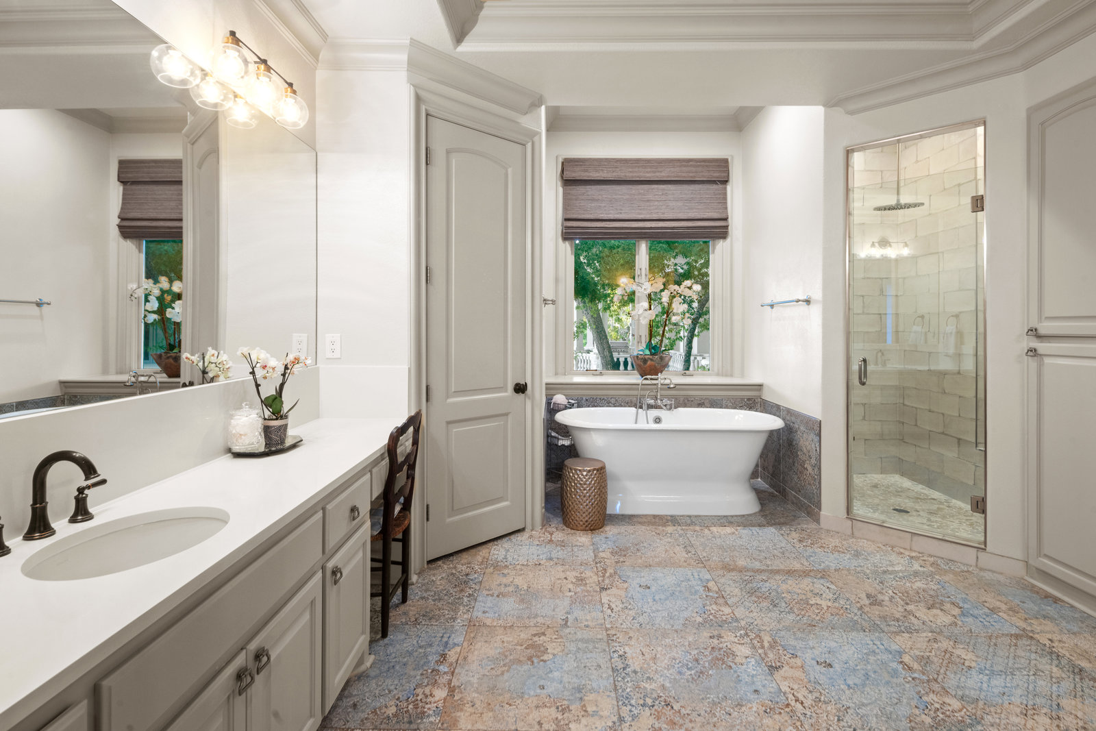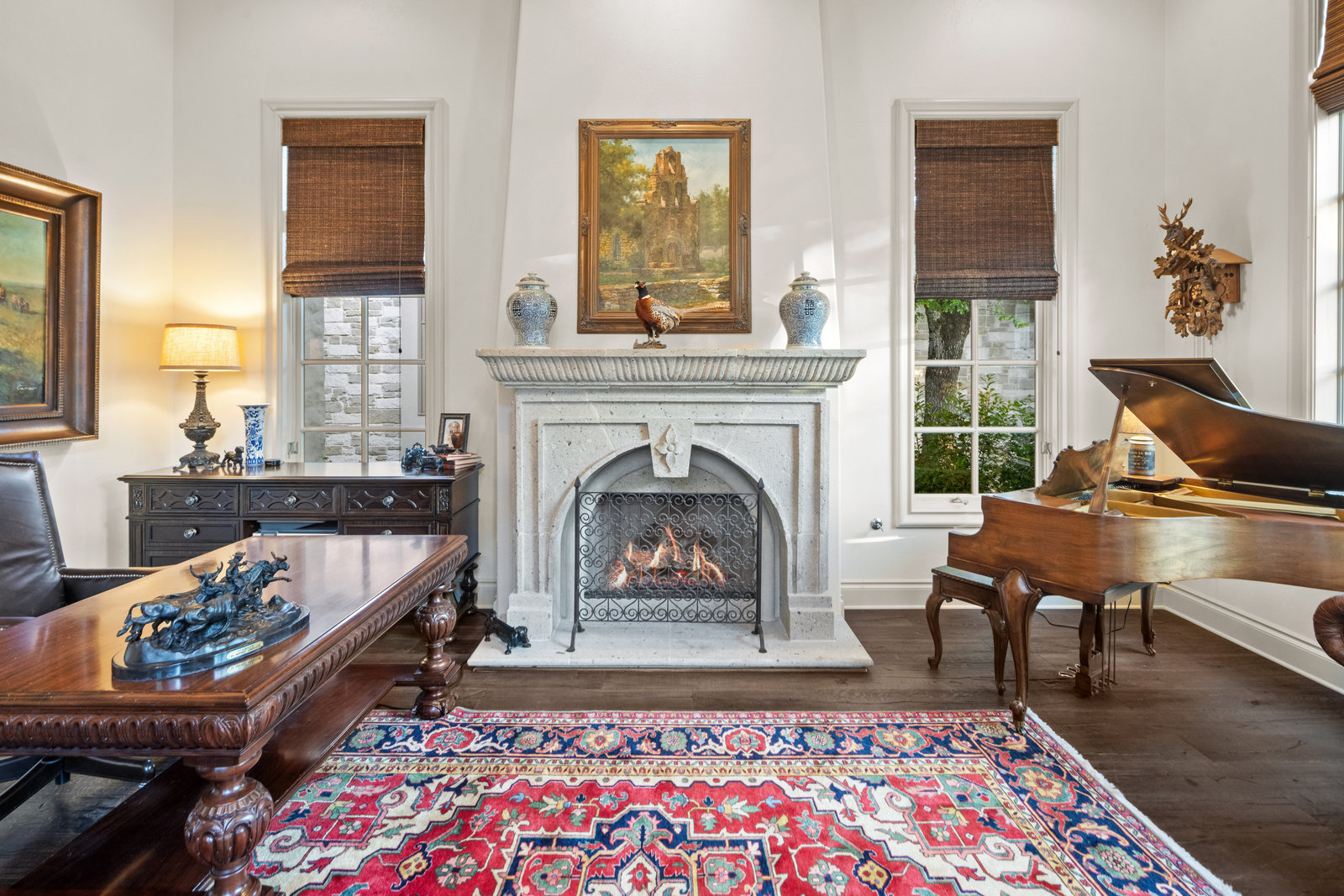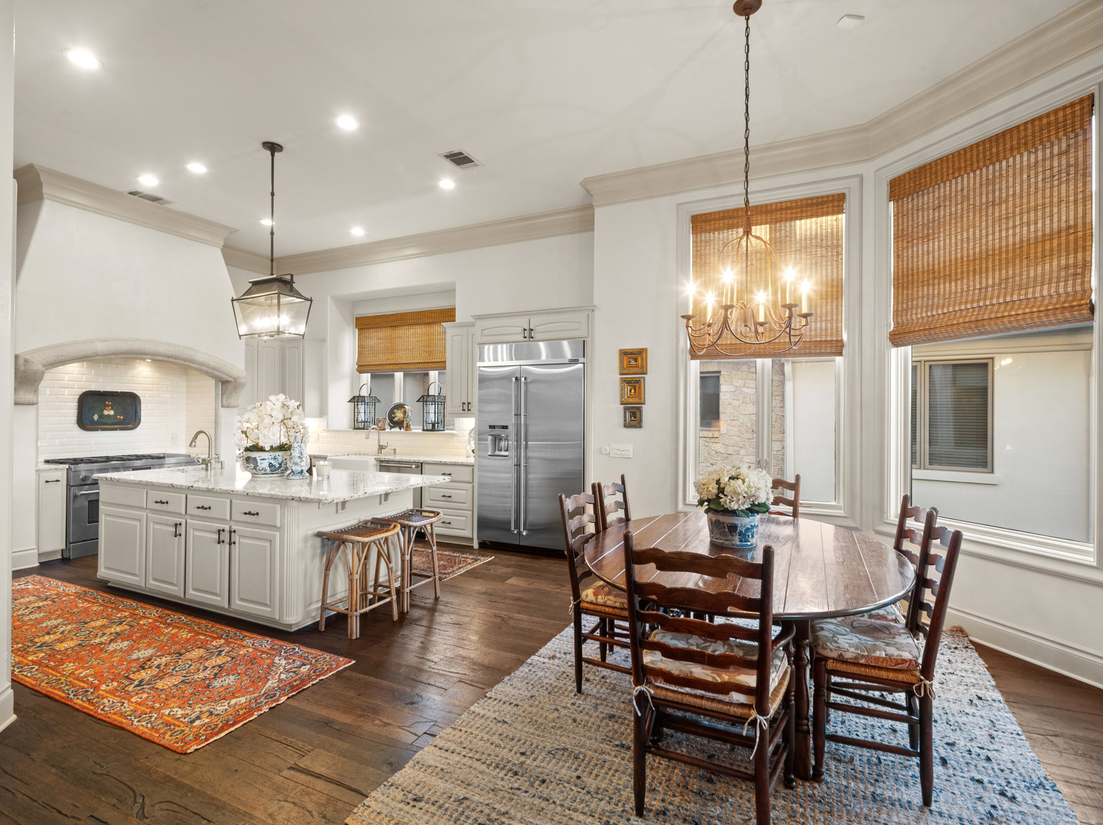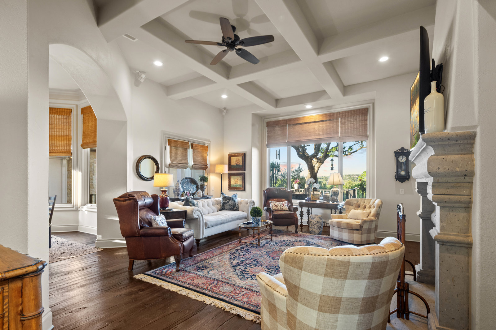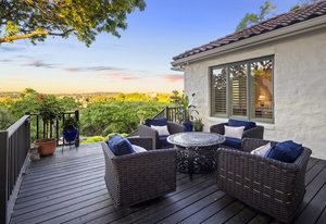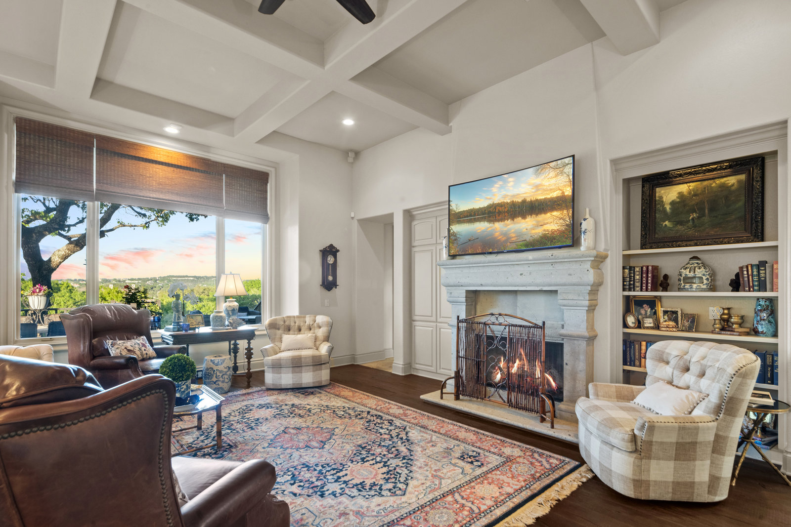 Welcome to 8862 Chalk Knoll Drive, a stunning Santa Barbara Style home built by Heyl Custom Homes. This well-appointed and meticulously maintained residence exudes elegance and luxury. Situated on a generous half acre lot with stunning views, this home is a rare find. Upon entering, you are greeted by a charming courtyard with a wood-burning fireplace, setting the tone for the exquisite features that await. The main level boasts a primary suite with a recently updated bathroom, free-standing tub, and massive closet space. Two separate living areas adorned with large windows and grand fireplaces create a warm and inviting atmosphere. The formal dining room provides an ideal setting for hosting gatherings, while the spacious gourmet kitchen with a breakfast area is a culinary haven, featuring a 48-inch gas range, beverage fridge, wine bar, and butler's pantry. Upstairs, a generous game room and three additional bedrooms, along with two baths, offer ample space for relaxation and privacy. Throughout the home, elegant hand scraped European White Oak wood floors and Canterra Stone floors lend a rustic yet sophisticated touch, creating a seamless flow between the living spaces. The outdoor area is a true highlight, with a sprawling 1100 square foot deck that provides the perfect setting for entertaining and savoring the breathtaking hill country views. The east-facing backyard ensures a delightful ambiance, while the terraced yard, professionally landscaped and backing a greenbelt, enhances the sense of tranquility and natural beauty. One of the closest neighborhoods to Barton Creek Country Club, members have access to golf, tennis courts, dining and much more. Two private schools within the neighborhood - St. Gabriel's and St. Michael's and two more, St Andrews High School Campus and Regents School of Austin located down the street. Easy access to major highways (Bee Cave Rd, 360 and SW Parkway) for all of your everyday needs just a few minutes away.