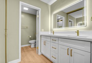 Welcome to 8 Dogwood, an exquisite 3 bedroom, 2 bath home offering a coveted, turn-key lifestyle in one of Irvine's most sought-after communities. Step inside to an open-concept floor plan bathed in natural light, courtesy of large dual-pane windows and a desirable southwest orientation. The seamless flow is accentuated by recessed lighting, durable wood-styled vinyl flooring, and a sophisticated, marble-inspired gas fireplace that serves as a stunning focal point. The designer kitchen is a culinary dream, featuring pristine white cabinetry, quartz countertops, stainless steel appliances, and beautiful tiling accent walls—perfect for both everyday living and entertaining. The primary master suite features a modern en-suite bath with dual sinks and walk-in shower. One of the two secondary bedrooms offers the unique advantage of a private enclosed yard. Both bathrooms present an elegant finish, complete with white cabinetry, chic gold-tone hardware, and contemporary LED-lighted mirrors. The property is complete with a newly upgraded 2 car garage with epoxy flooring, new garage door opener with remote wifi access and custom cabinetry. Residents have access to exceptional community amenities, including a clubhouse, pool, spa, and playground. Perfectly situated near top-rated Irvine schools, UCI, parks, premium shopping, and dining. This immaculate, move-in-ready home was recently appraised at $1.475 million and is now aggressively priced for a swift sale. An unparalleled opportunity awaits to make 8 Dogwood your new home.