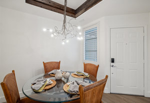 Recent upgrades include a brand new Samsung kitchen appliance package - refrigerator, oven with gas range and dishwasher; brand new LVP flooring, new carpet, fresh paint, recessed LED lighting, custom barnwood fireplace mantle, surround and custom barnwood architectural features and chandelier in the breakfast nook. Washer & Dryer in the Laundry Room are both included, mounted Great Room TV with versatile telescoping and custom angle mount also included. The unit also includes an exterior storage closet for seasonal equipment or any of your storage needs.
