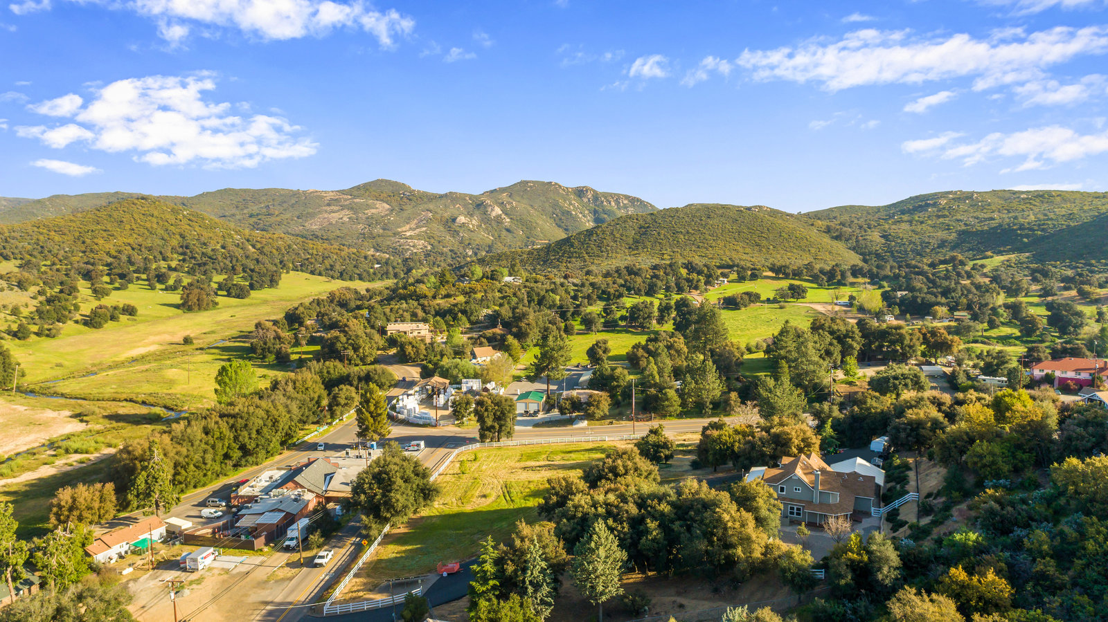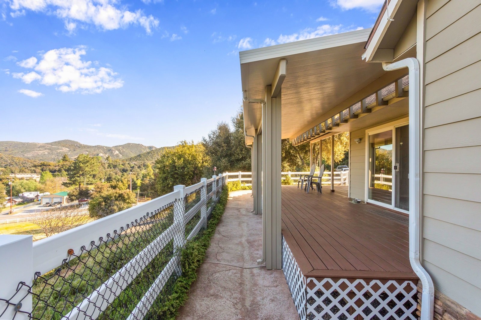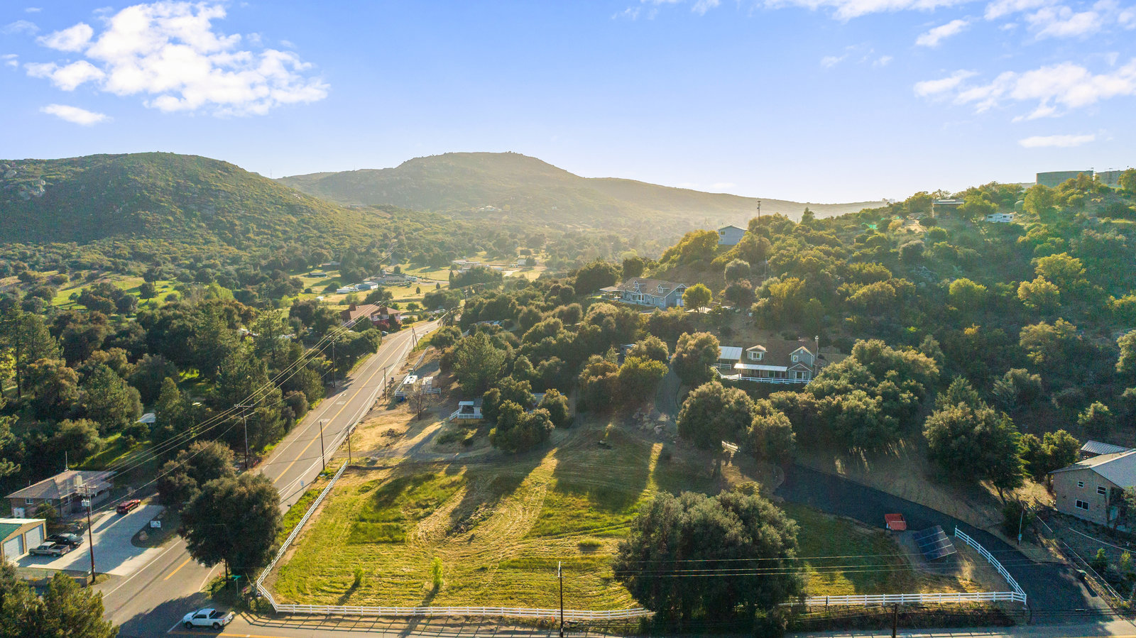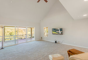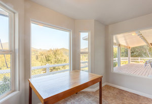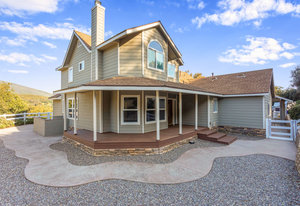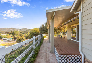 The lower section of the property offers a level terrain ideal for accommodating horses or additional workshops and structures. Other highlights include a seller-owned solar electric system, zoned heating and air system, dual-pane vinyl windows, and ceiling fans throughout. The property is serviced by propane and the Descanso Water and Septic System.