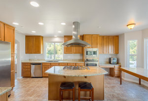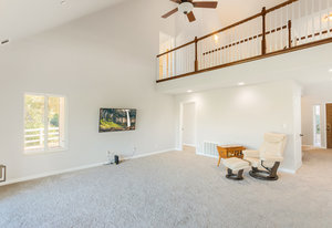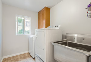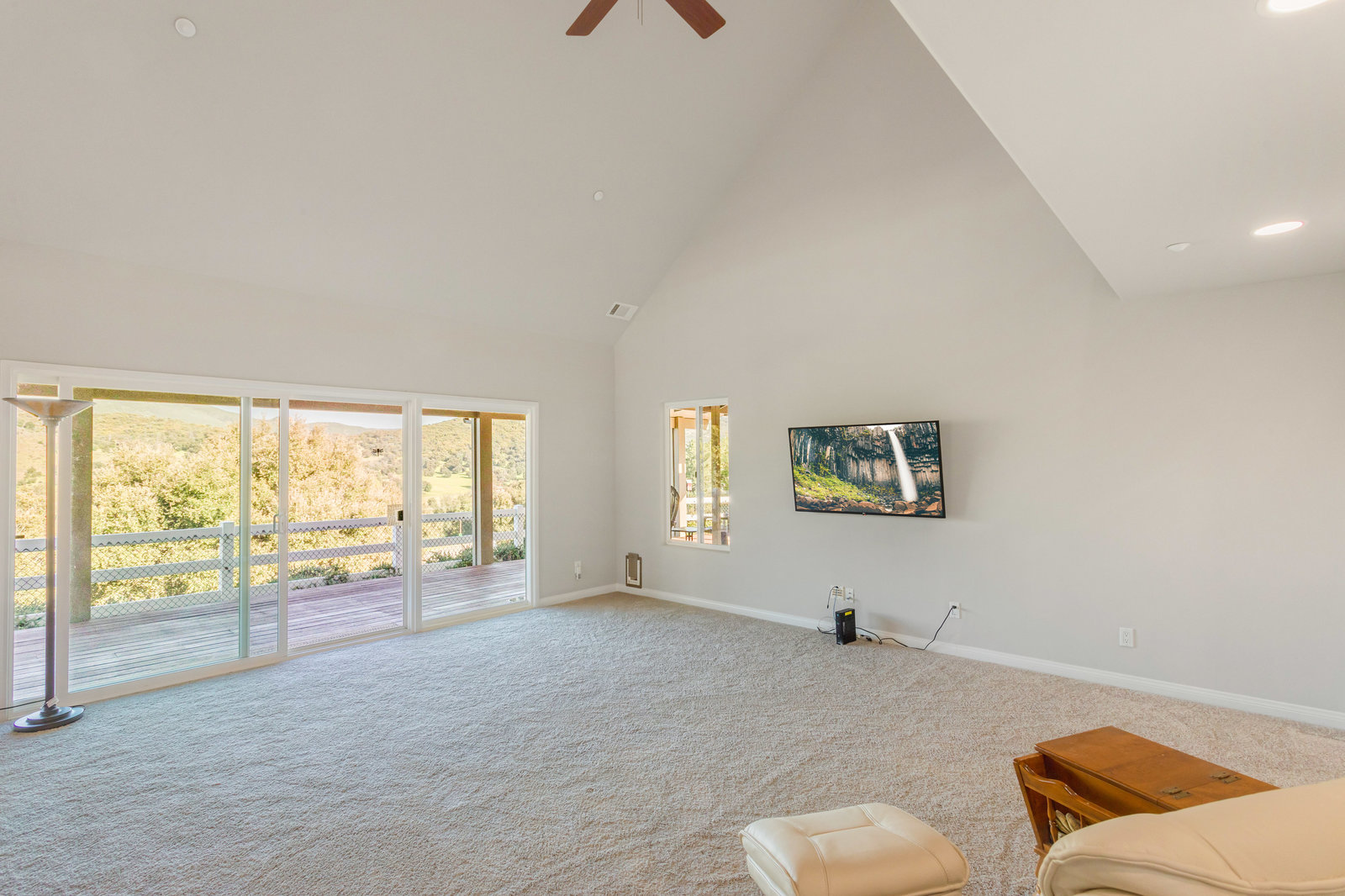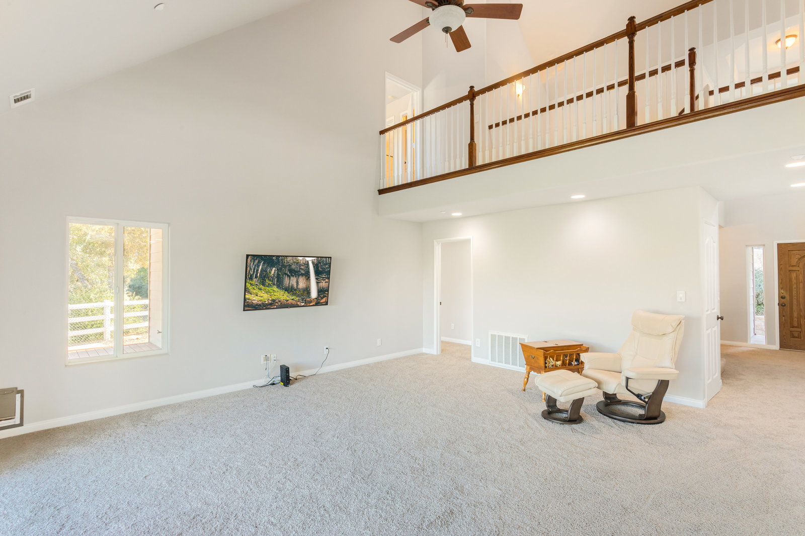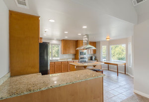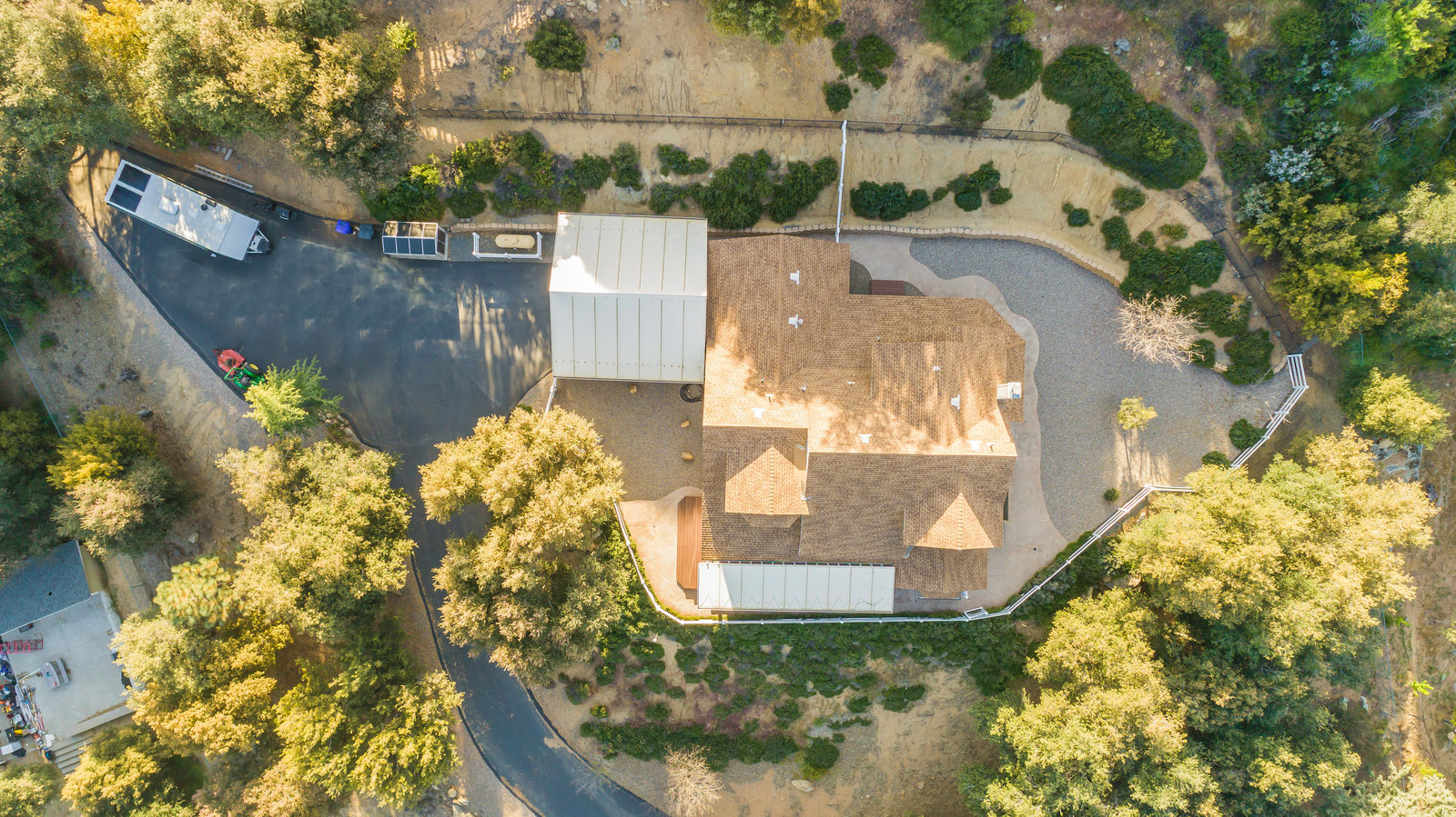 The lower section of the property offers a level terrain ideal for accommodating horses or additional workshops and structures. Other highlights include a seller-owned solar electric system, zoned heating and air system, dual-pane vinyl windows, and ceiling fans throughout. The property is serviced by propane and the Descanso Water and Septic System.