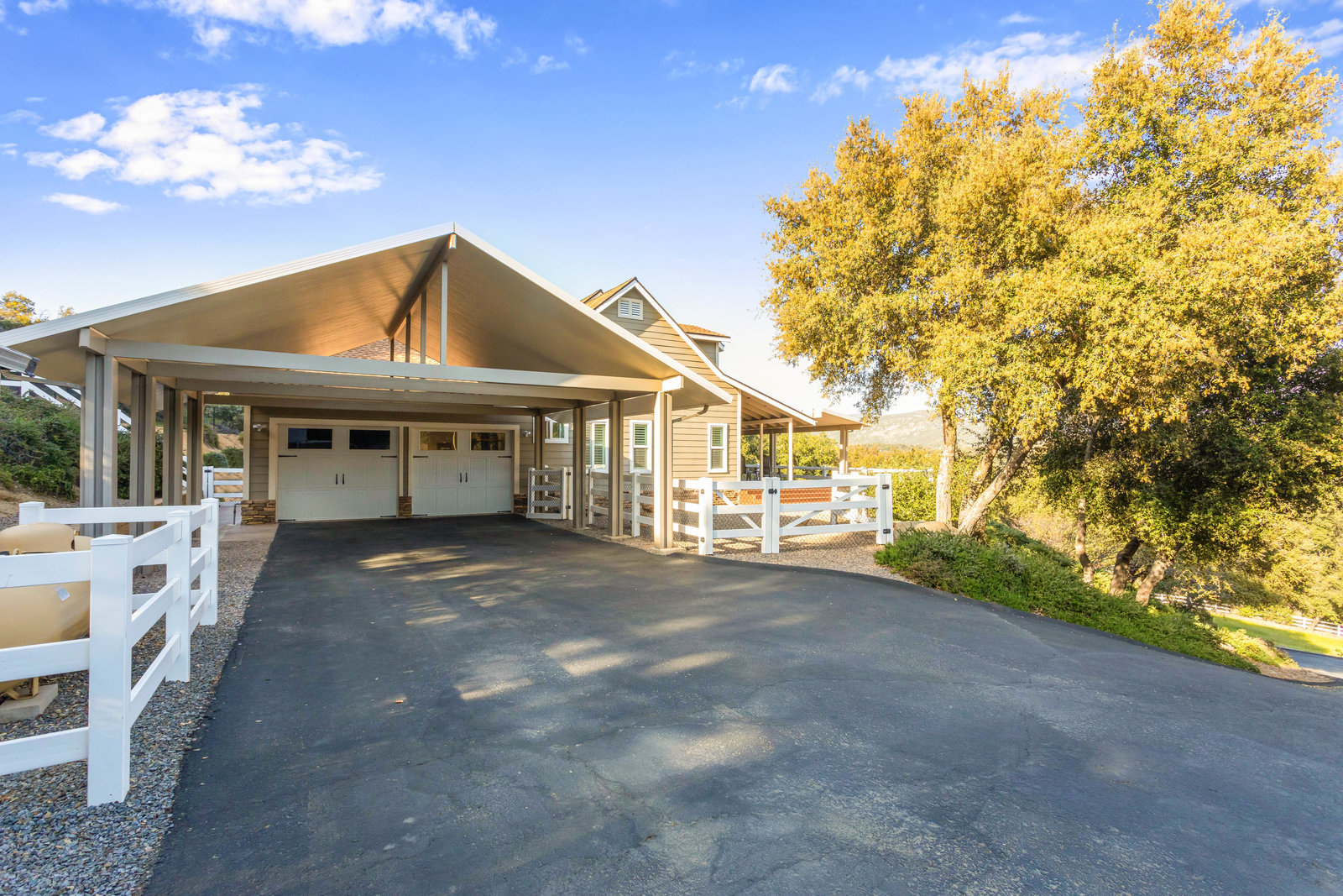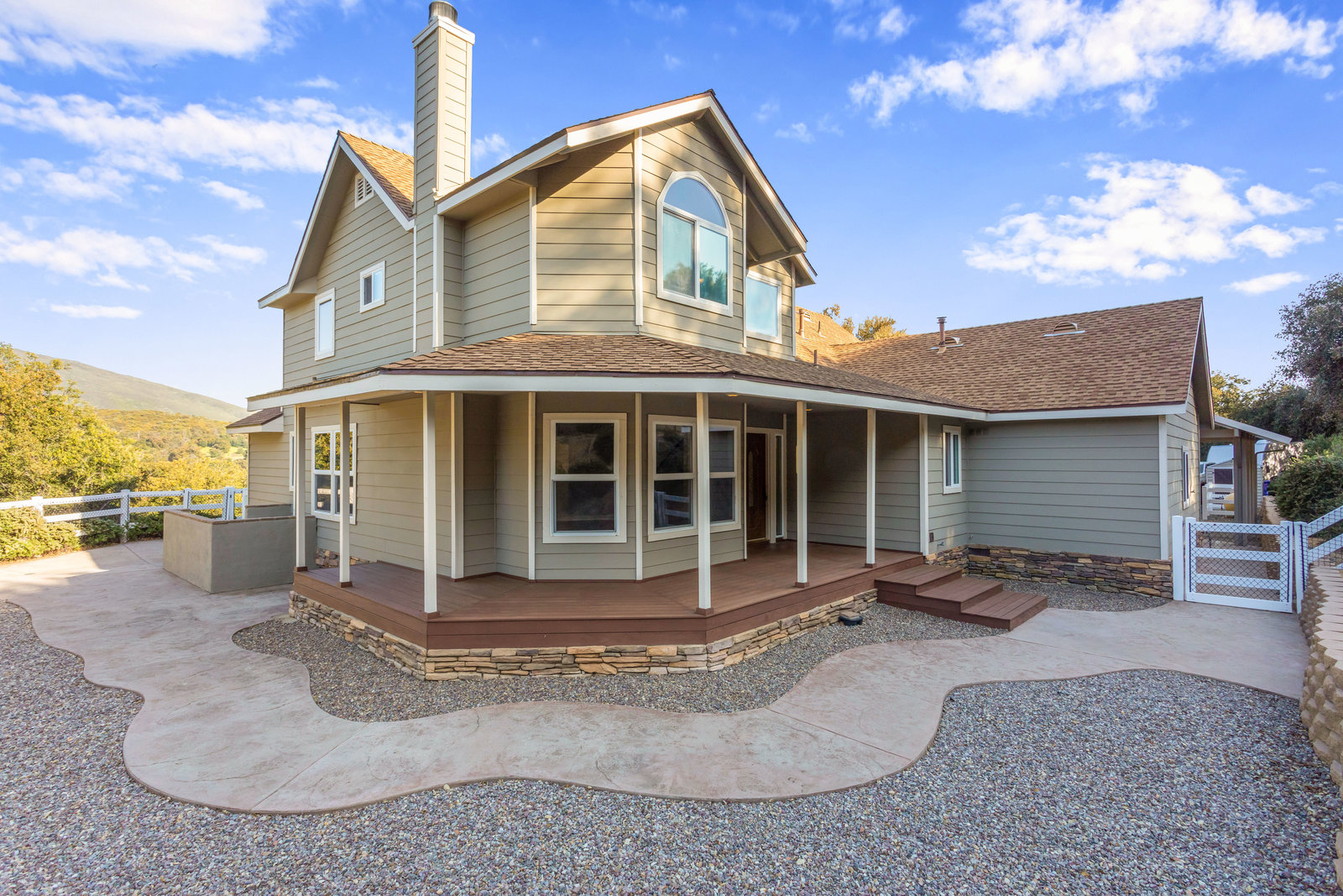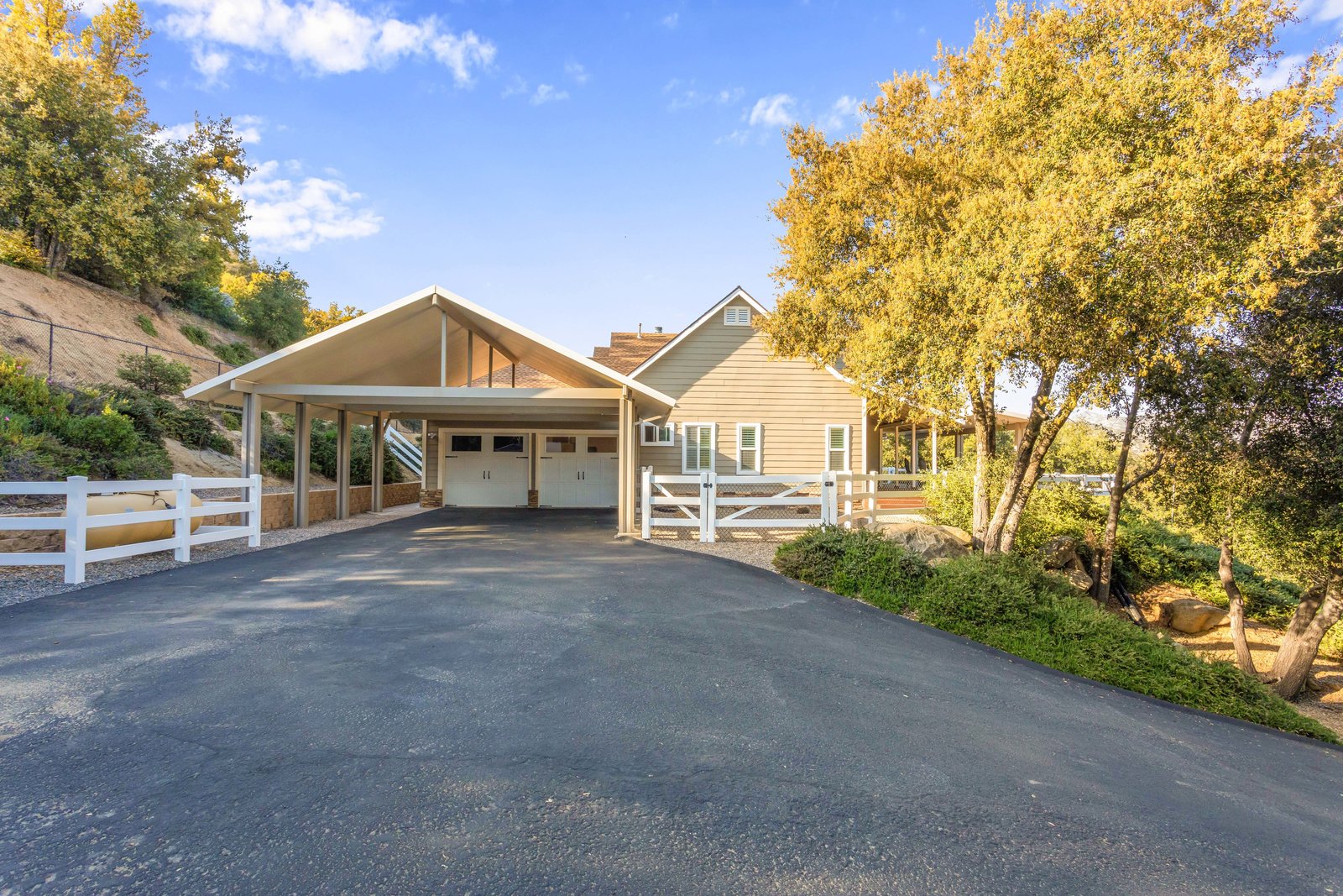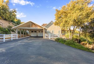 Discover this beautiful custom-built home situated on a 2.82-acre parcel, centrally located near town, offering breathtaking panoramic views. The property is fully fenced-in and adorned with paved, tree-lined oak trees. Inside, enjoy 3 bedrooms, 3.5 baths, and 2646 sqft of luxurious living space, recently enhanced with new carpets and custom tile floors.