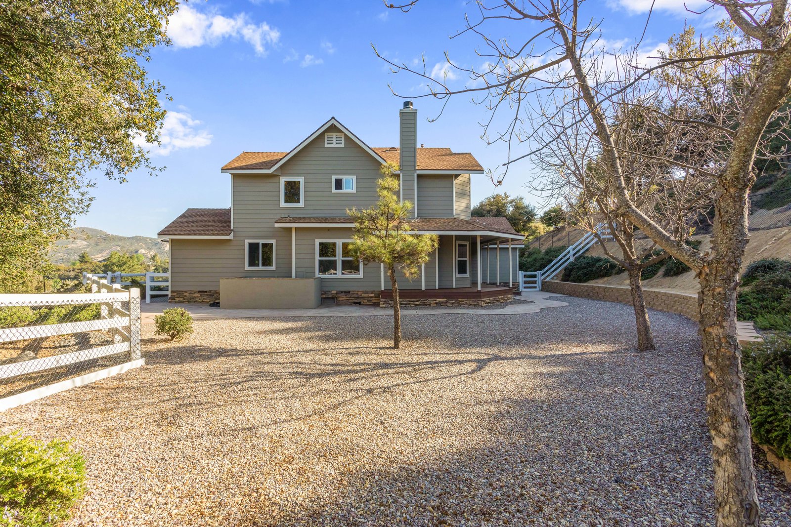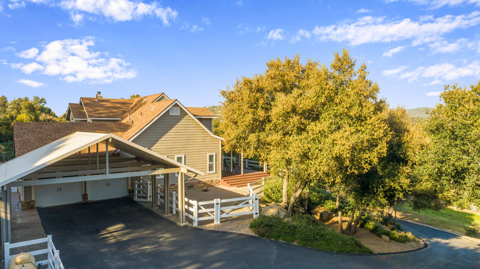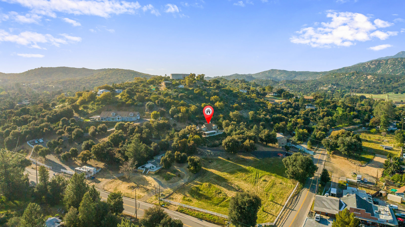 Discover this beautiful custom-built home situated on a 2.82-acre parcel, centrally located near town, offering breathtaking panoramic views. The property is fully fenced-in and adorned with paved, tree-lined oak trees. Inside, enjoy 3 bedrooms, 3.5 baths, and 2646 sqft of luxurious living space, recently enhanced with new carpets and custom tile floors.