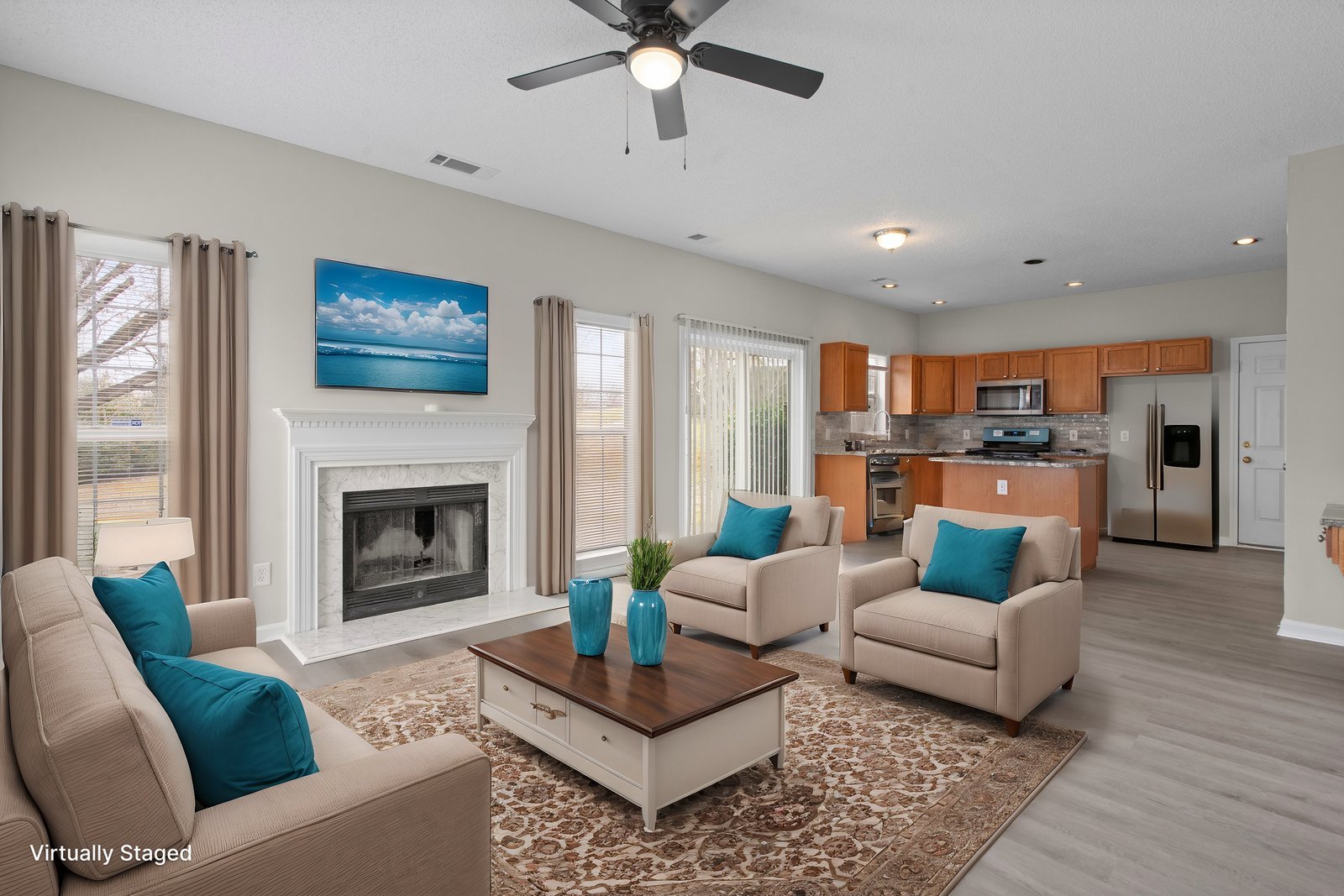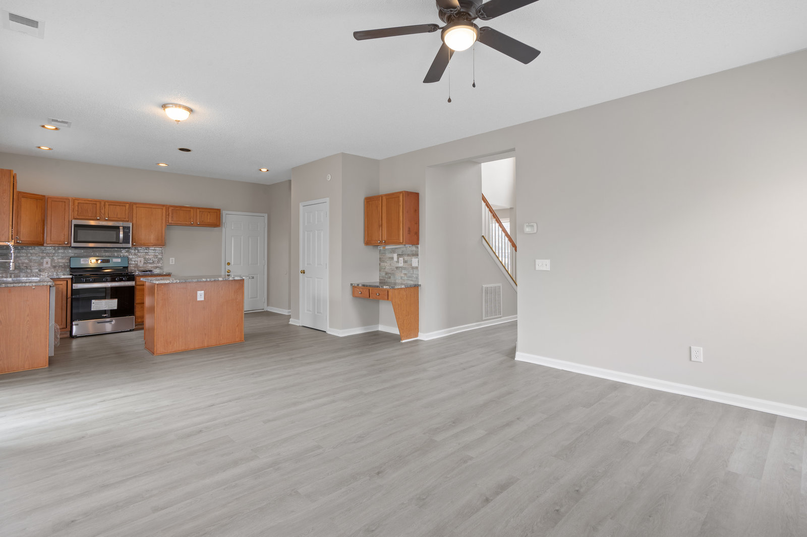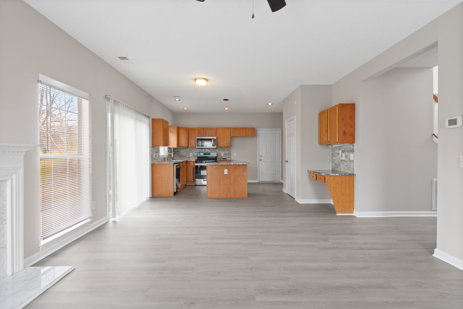 Experience the charm of this beautifully updated two-story home that perfectly balances style and functionality. The inviting kitchen showcases modern stainless steel appliances, a chic tiled backsplash, and elegant granite countertops, making it a chef's dream. Enjoy the durability and beauty of vinyl plank flooring throughout the downstairs, complemented by a cozy fireplace that adds warmth to the family room. The formal dining room and living room areas offer versatility as an office or flex space to meet your needs.